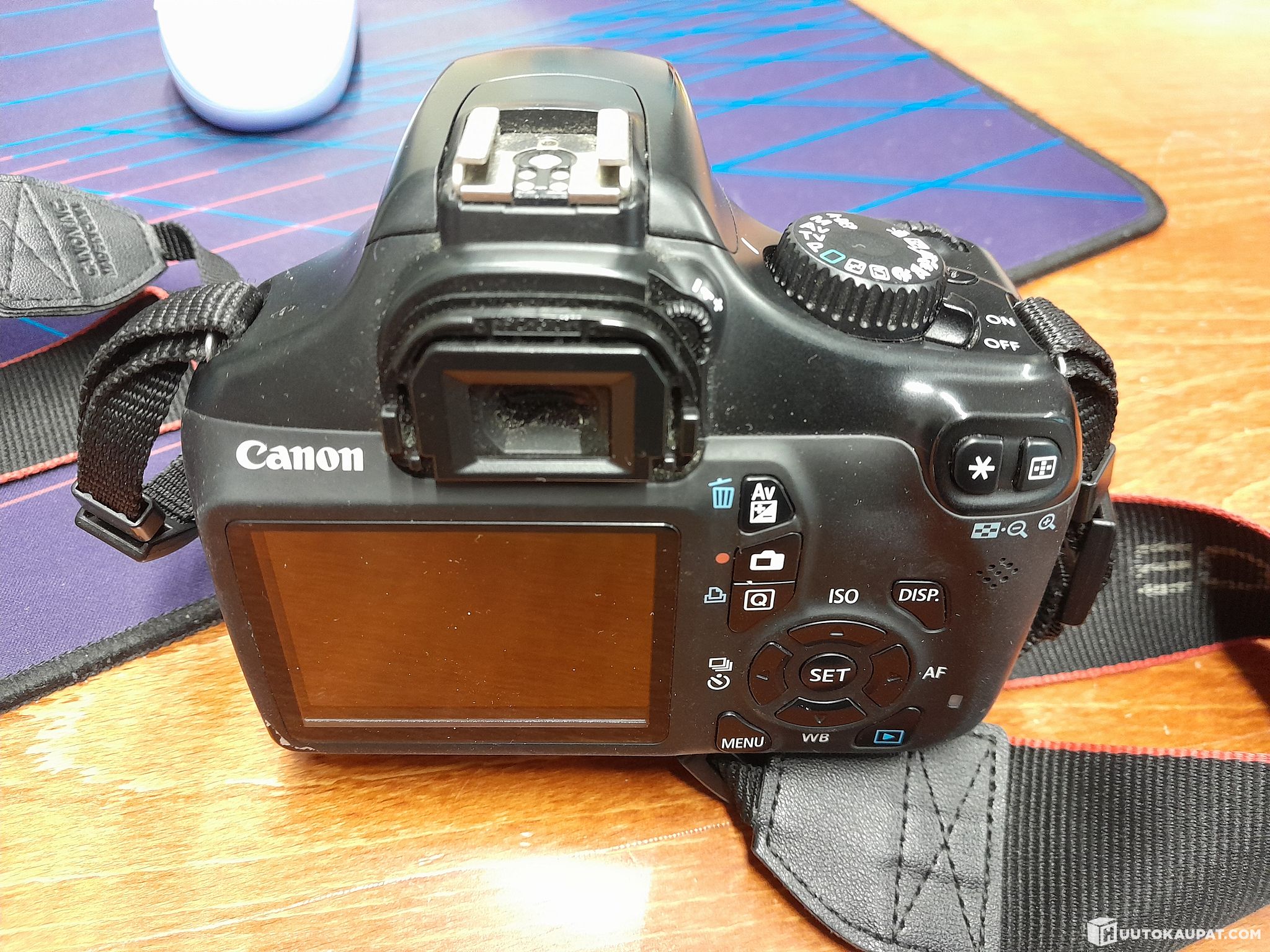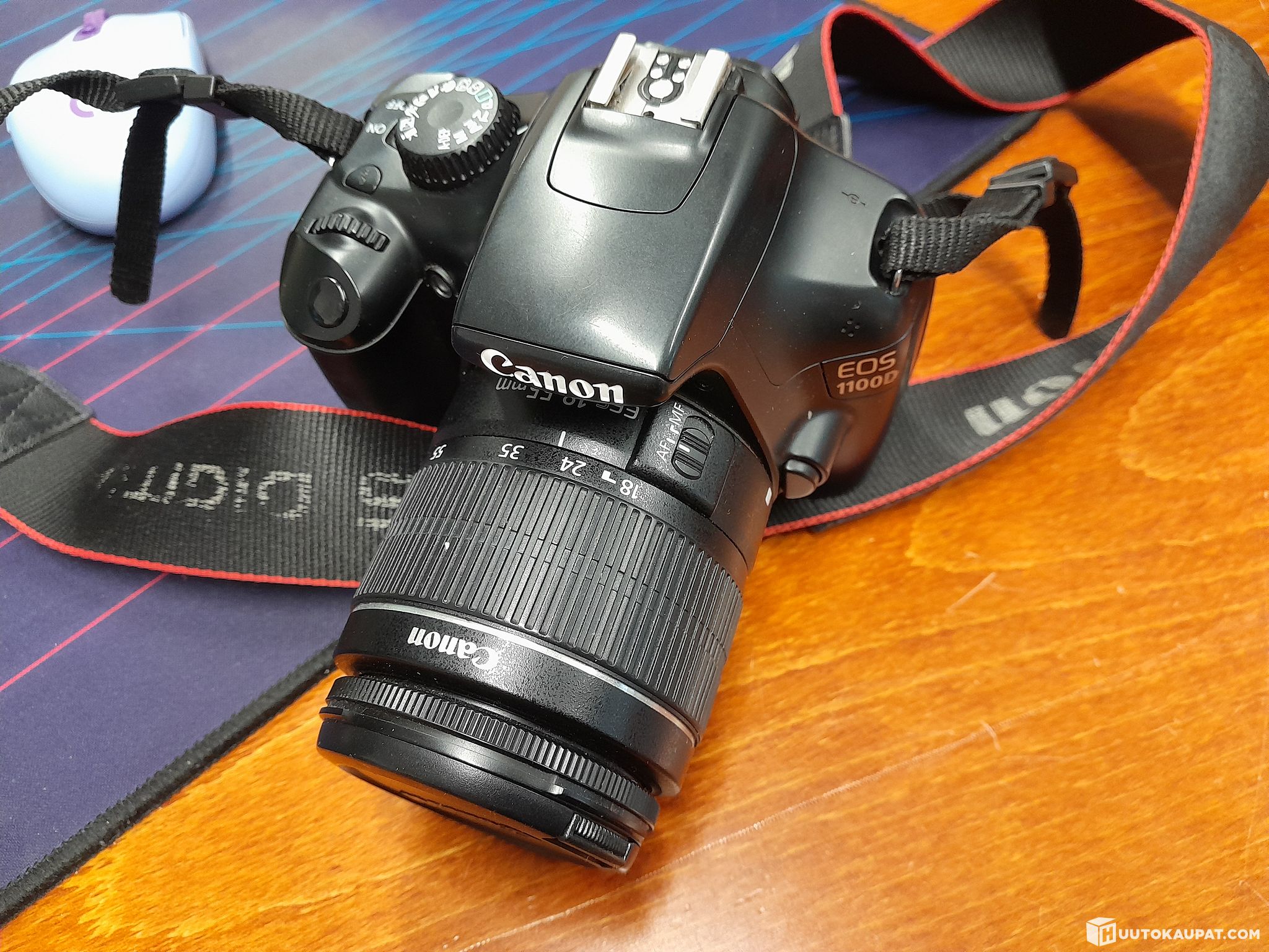 Käytetty, mukana objektiivi ja suojalaukku. Akku ja laturi puuttuu.