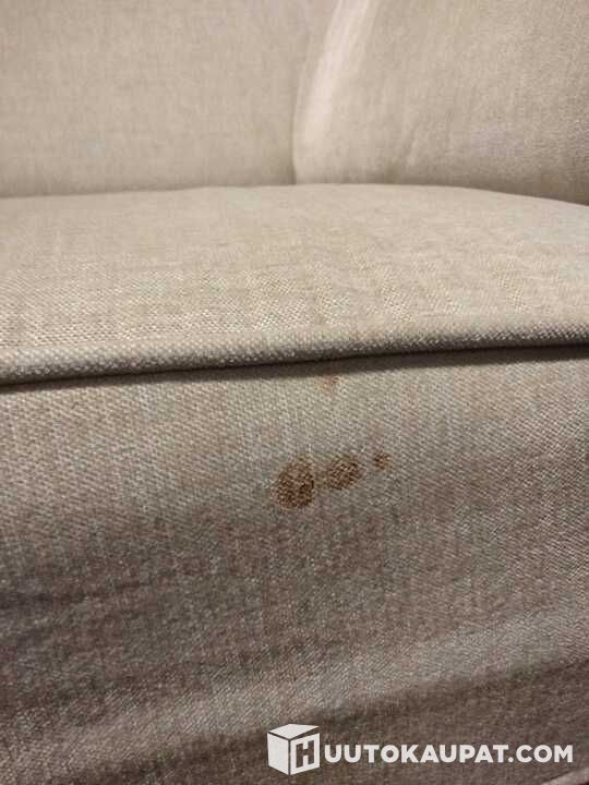 SOHVA ON ASIAKASPALAUTUS, LIKAA JA KÄYTÖN JÄLKIÄ. KULMAPALASSA KANGASSÄIKEET TOISINPÄIN KUIN MUUSSA SOHVASSA, JOTEN NÄYTTÄÄ LIKAISEMMALTA MITÄ ON.