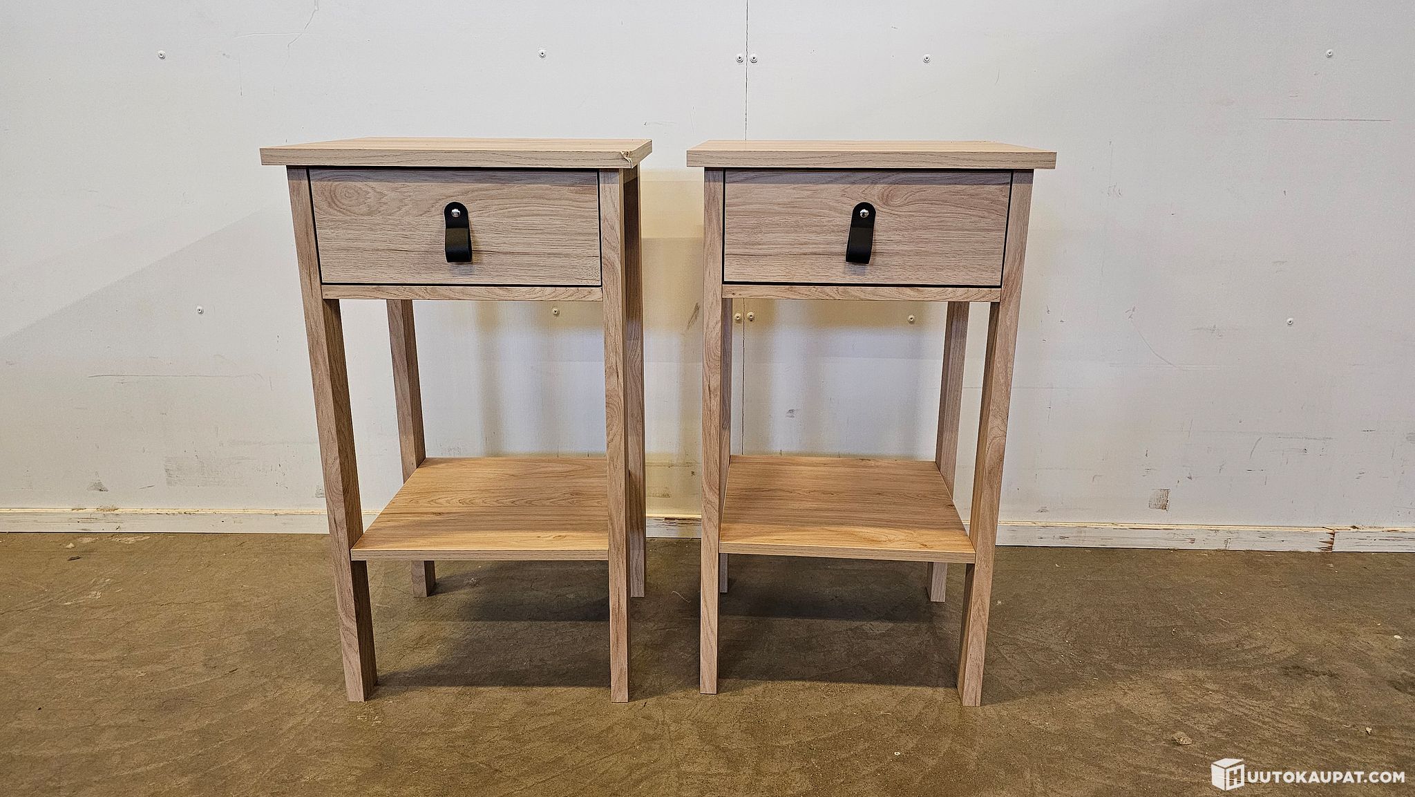 Madrid yöpöytä on kaunis valinta niin aikuisten kuin lastenkin makuuhuoneeseen. Yöpöydässä on yksi laatikko, jonne saat tarvittaessa vaikka kirjoja pois pölyttymästä yöpöydän päältä ja makuuhuoneen pidettyä rauhallisena. Lisäksi säilytystilaa löytyy avohyllystä. Mukana tulee kahdet erilaiset vetimet, joista toiset ovat upeat nahkaiset ja toiset metalliset nupit.