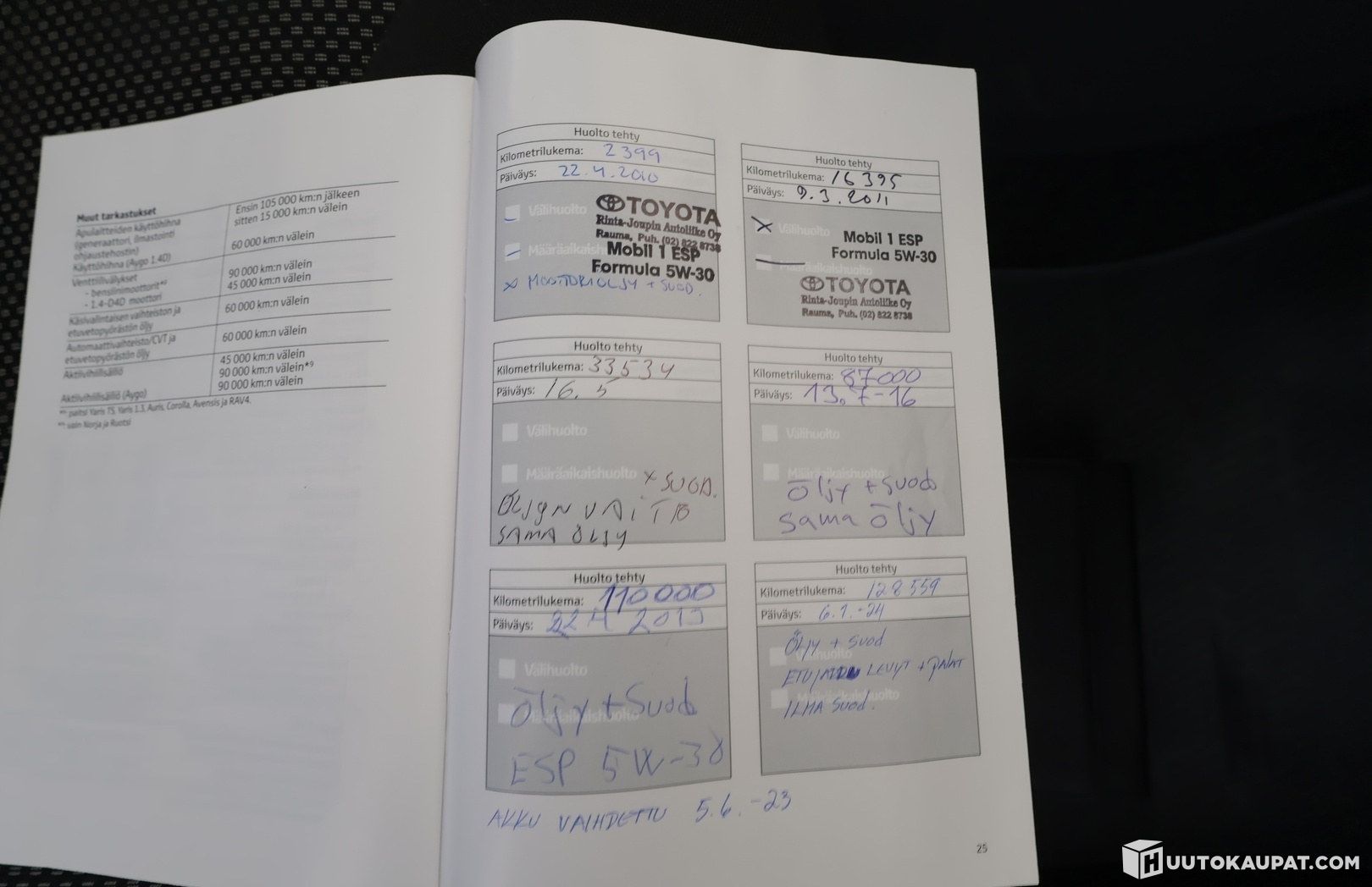 Huoltokirja, viimeisin huolto 6.1.2024 / 128559km