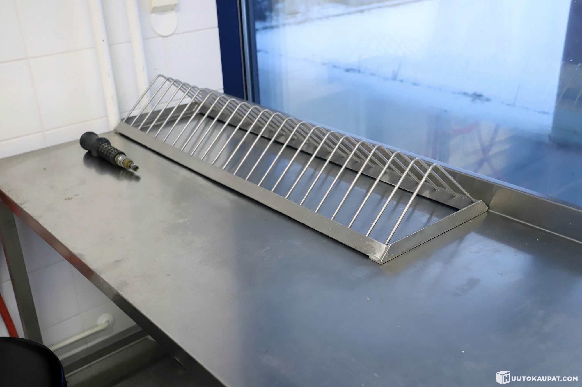Rosterinen pöytä, allastaso ja hyllyt.
