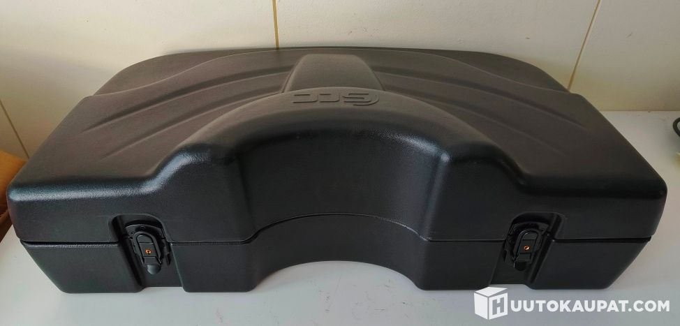Uusi ja käyttämätön ATV-kuljetuslaatikko, tarkoitettu mönkijän taka- tai etutelineelle. Laatikko on tukevarakenteinen, säänkestävä ja suunniteltu kovaan käyttöön työssä, metsässä ja vapaa-ajalla.