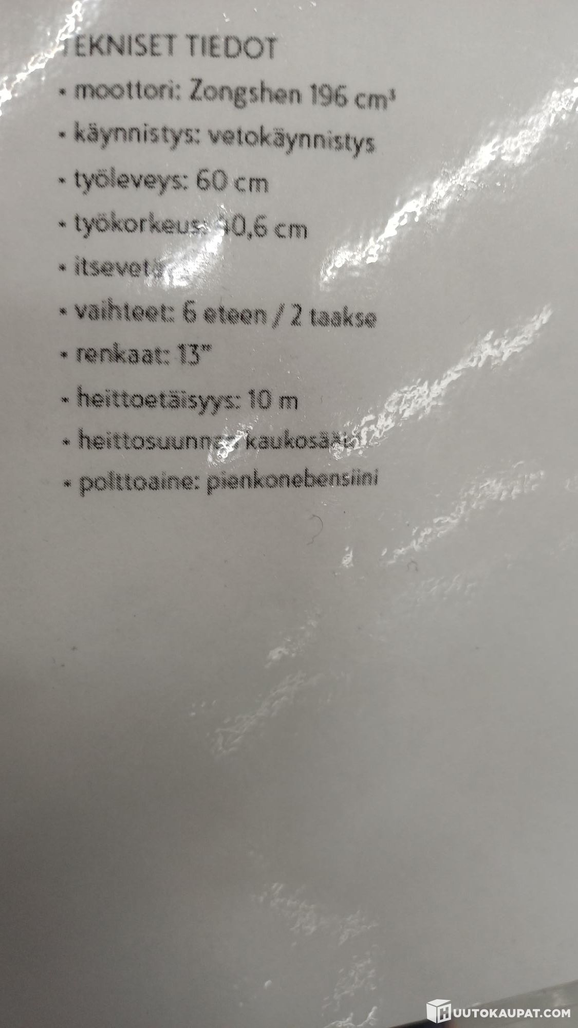 Tämän kohteen myyjä on Huutokaupat.com. J. Kaurila Oy / K-Rauta Palokka Jyväskylä antaa Huutokaupat.comin puolesta kohteesta lisätietoja ja vastaa kohteen luovutuksesta. Kohde tulee aina maksaa Huutokaupat.com-sivustolla olevien verkkomaksupainikkeiden kautta tai Huutokaupat.comin laskulla. Jos kohdetta ei makseta Huutokaupat.comille, Huutokaupat.com ei hyväksy mitään vastuuta kaupasta.