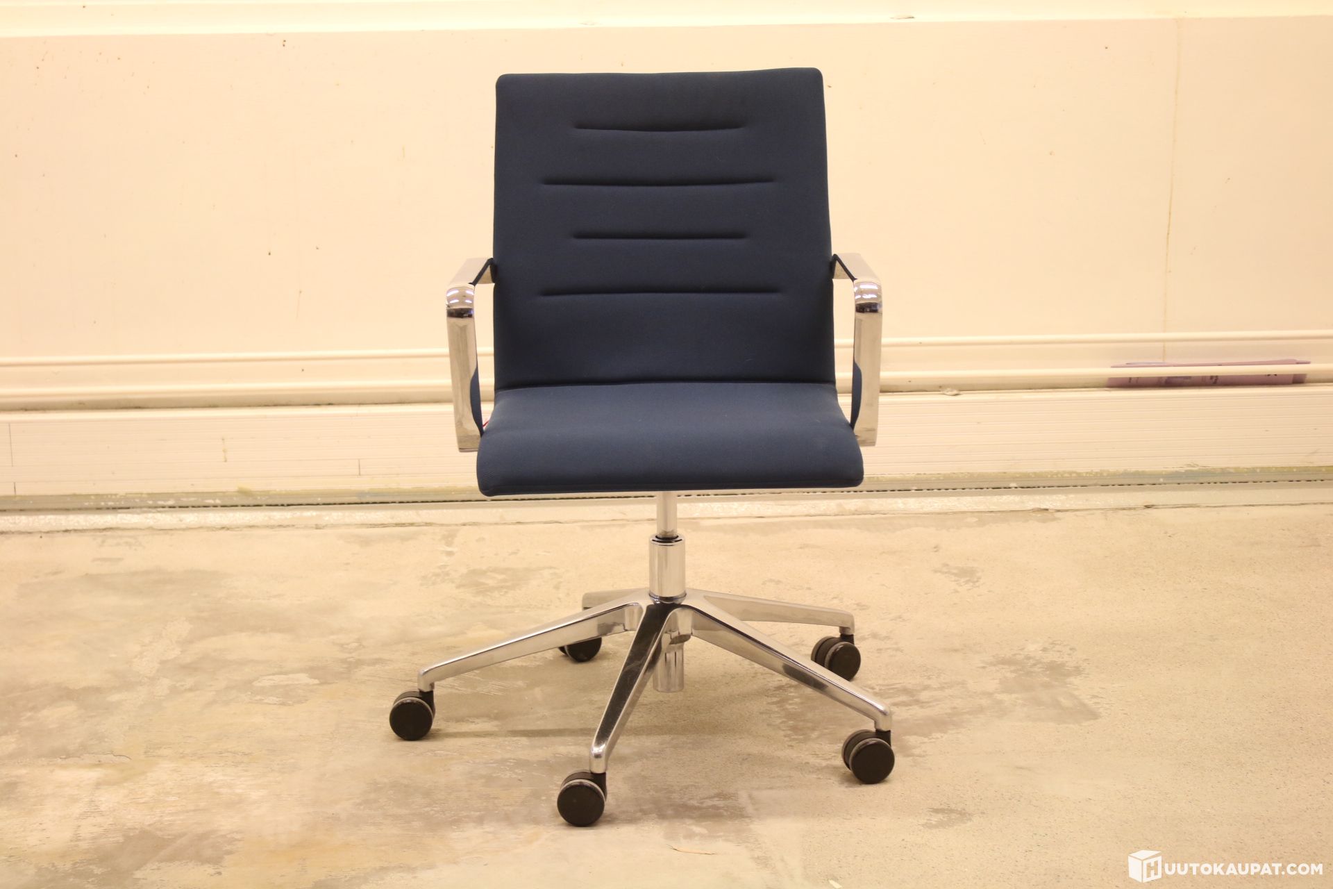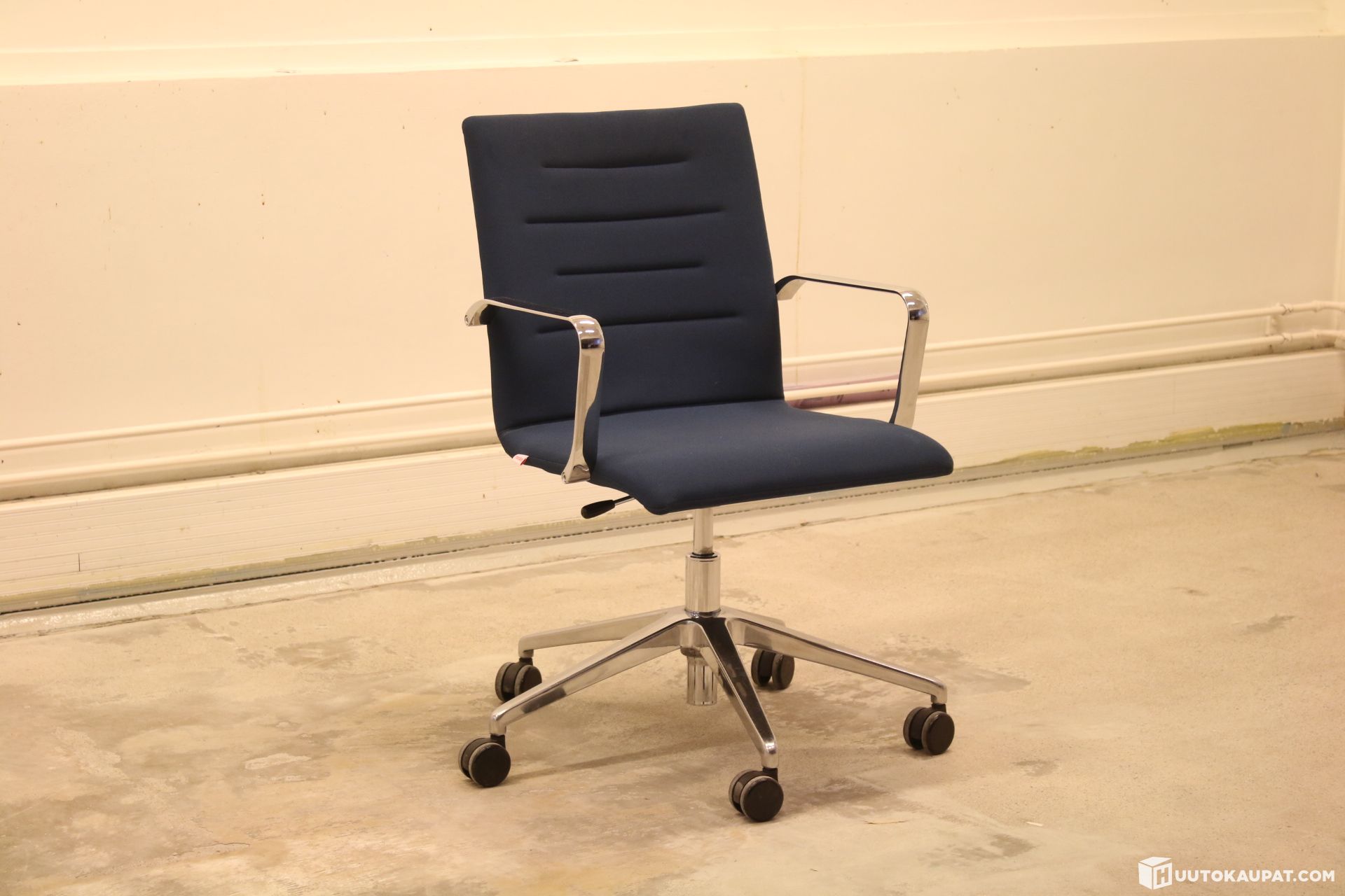 Modeon korkeus säädettävä työtuoli sinisessä kuosissa.
