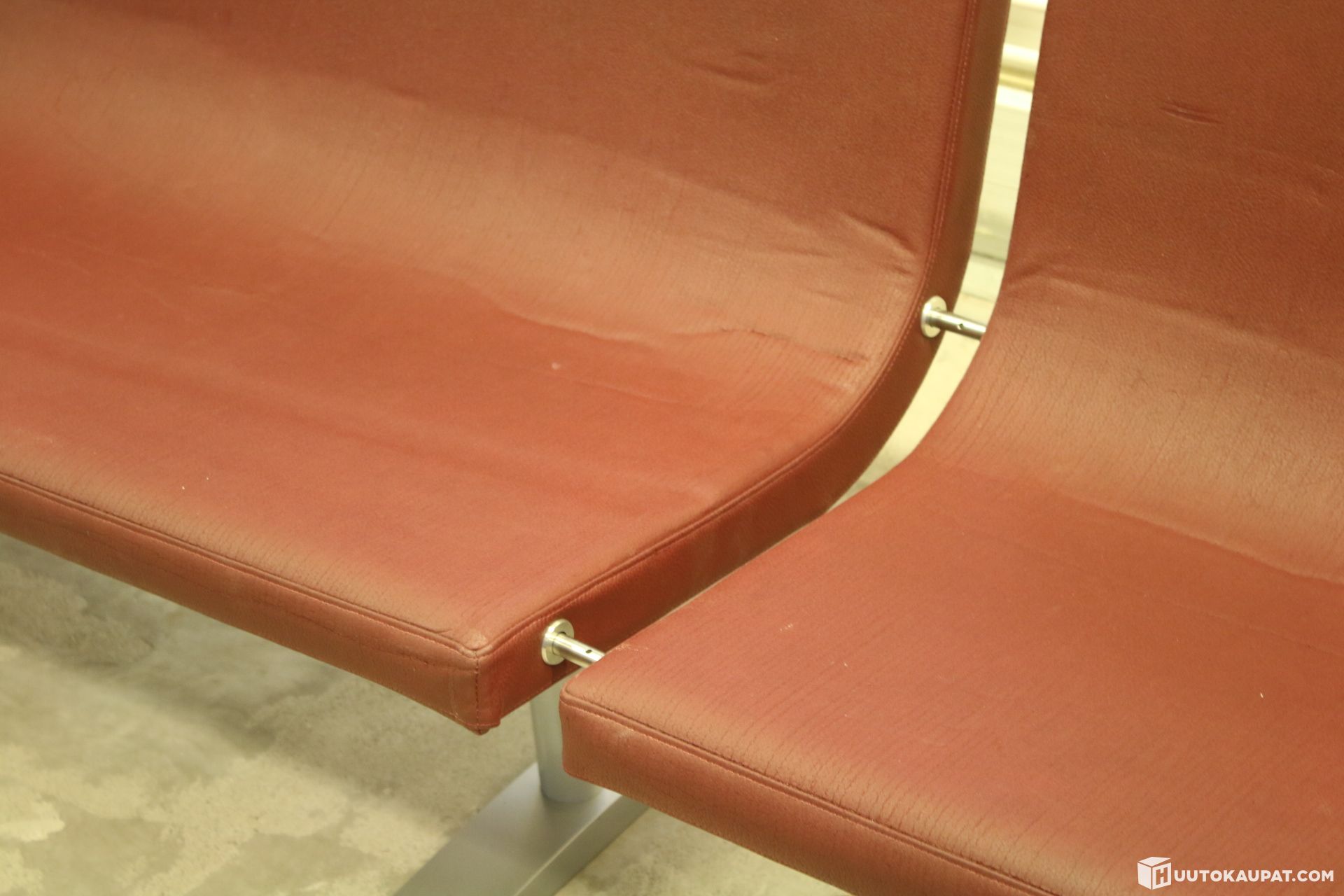 Kunto: Keinonahka hapertunut. Muutama kolhu verhoilussa. Liitos ruuveja puuttuu.