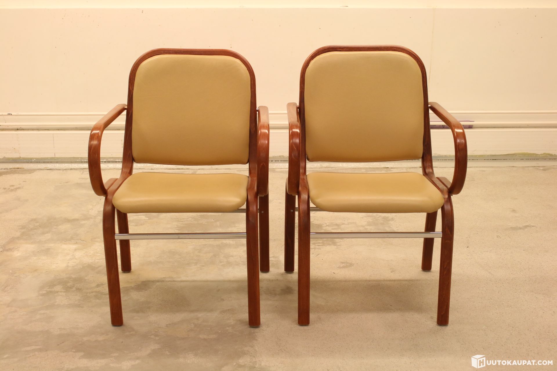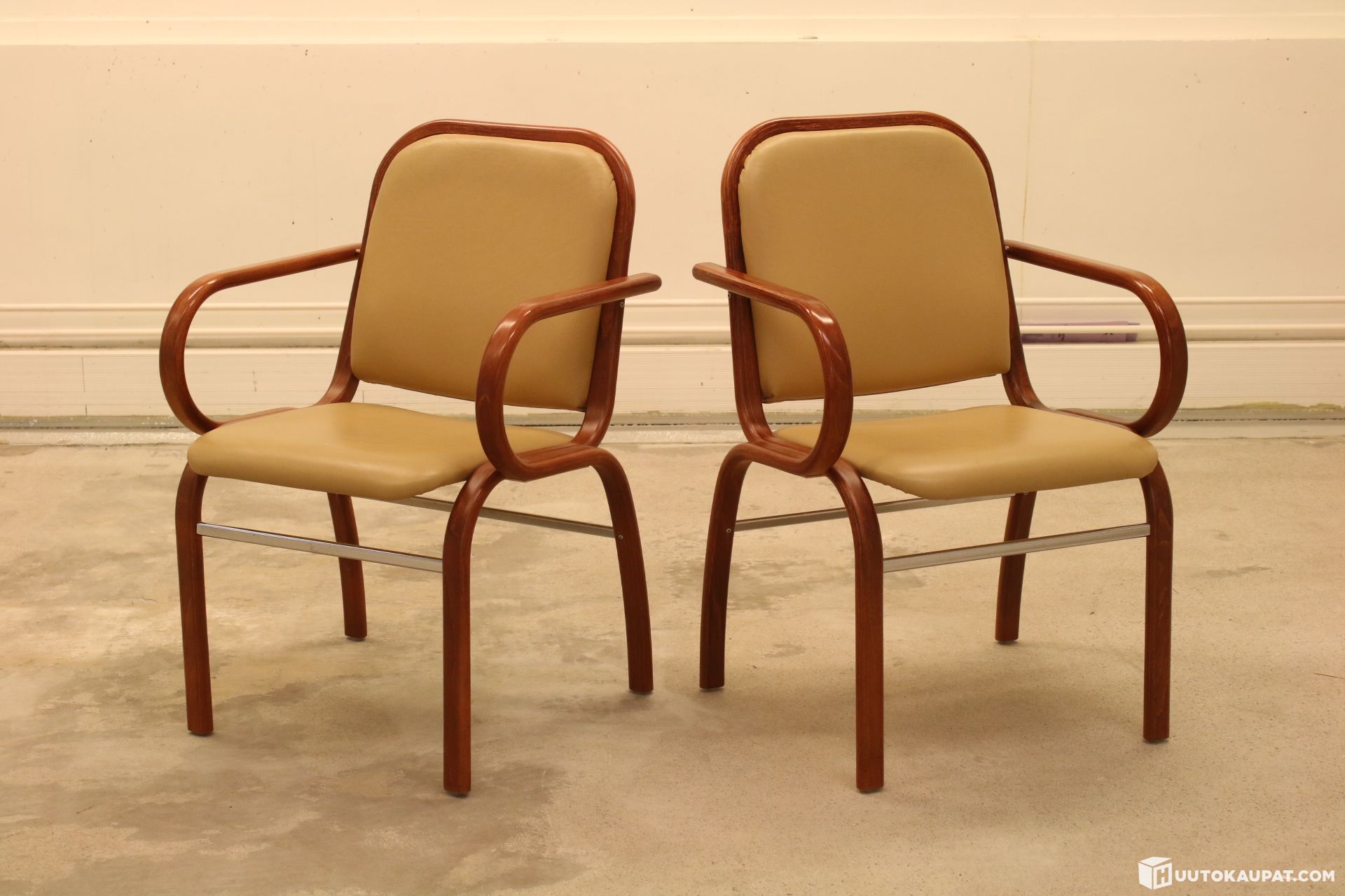 2KPL Vanhoja Askon tuoleja. Keinonahka / nahka verhoilu istuin- ja selkänojassa. Väri: Beige.