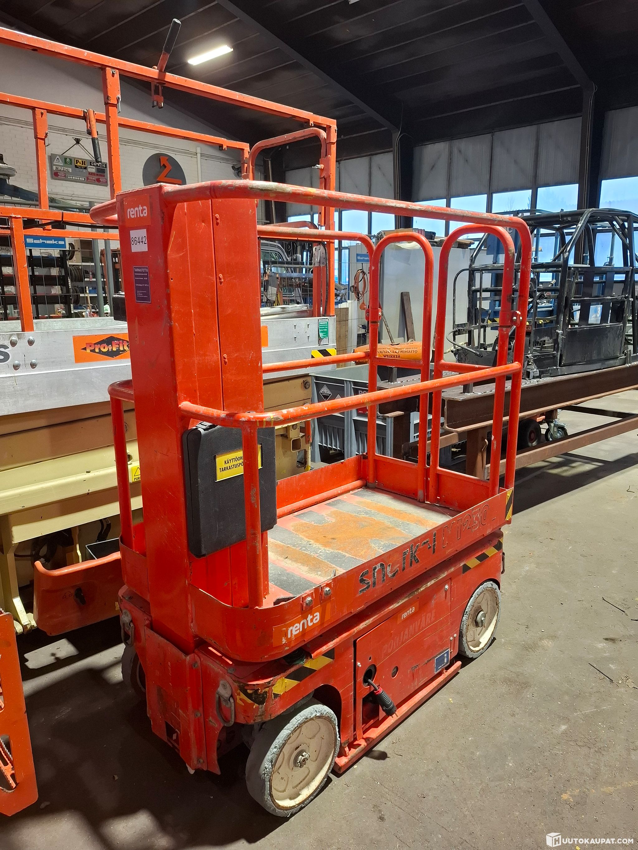Vuokrauskäytöstä poistettu akkukäyttöinen teleskooppimastonostin nostin.
