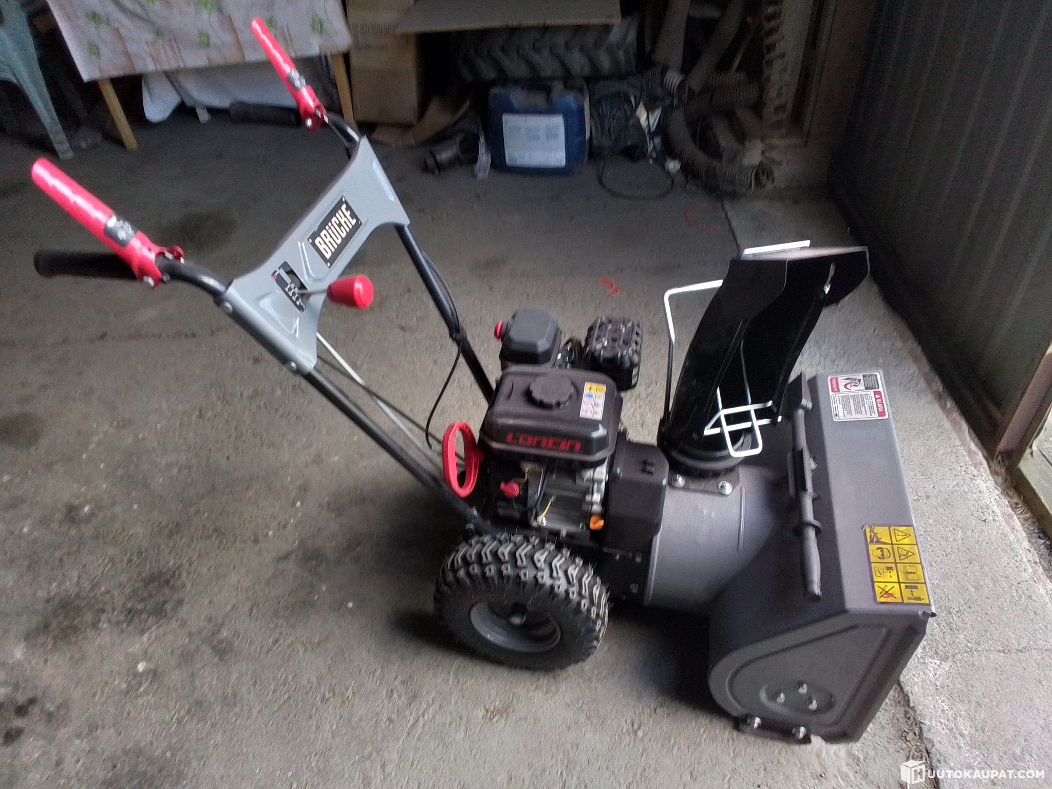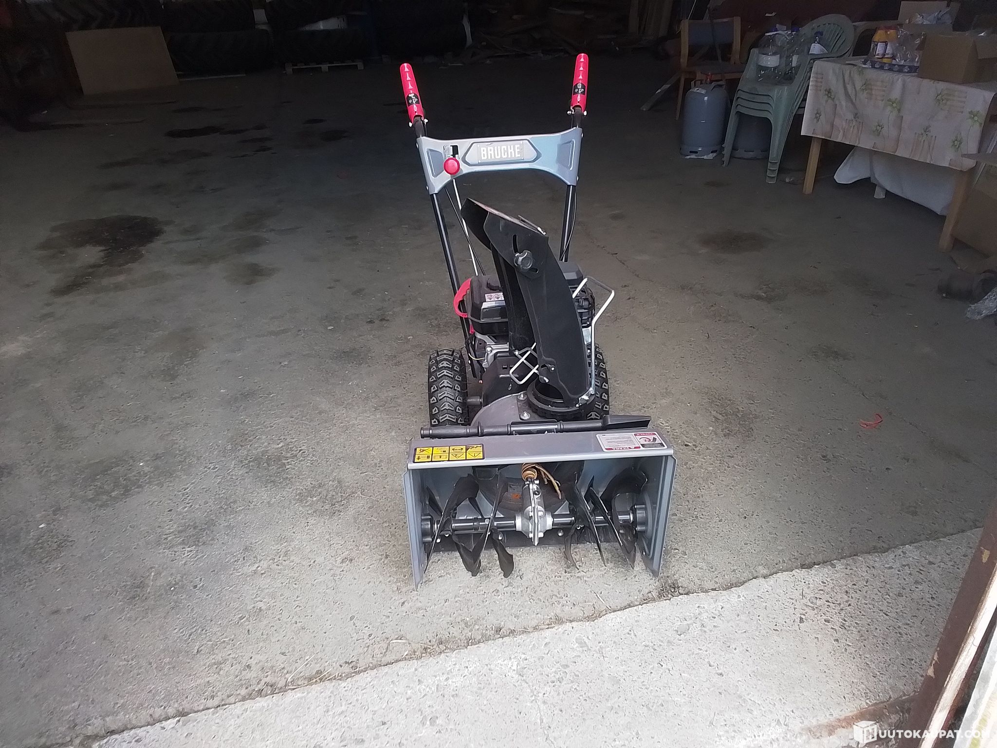 Huutokaupataan kuvissa näkyvä Brucke merkkinen työnnettävä lumilinko talven lumitöihin.