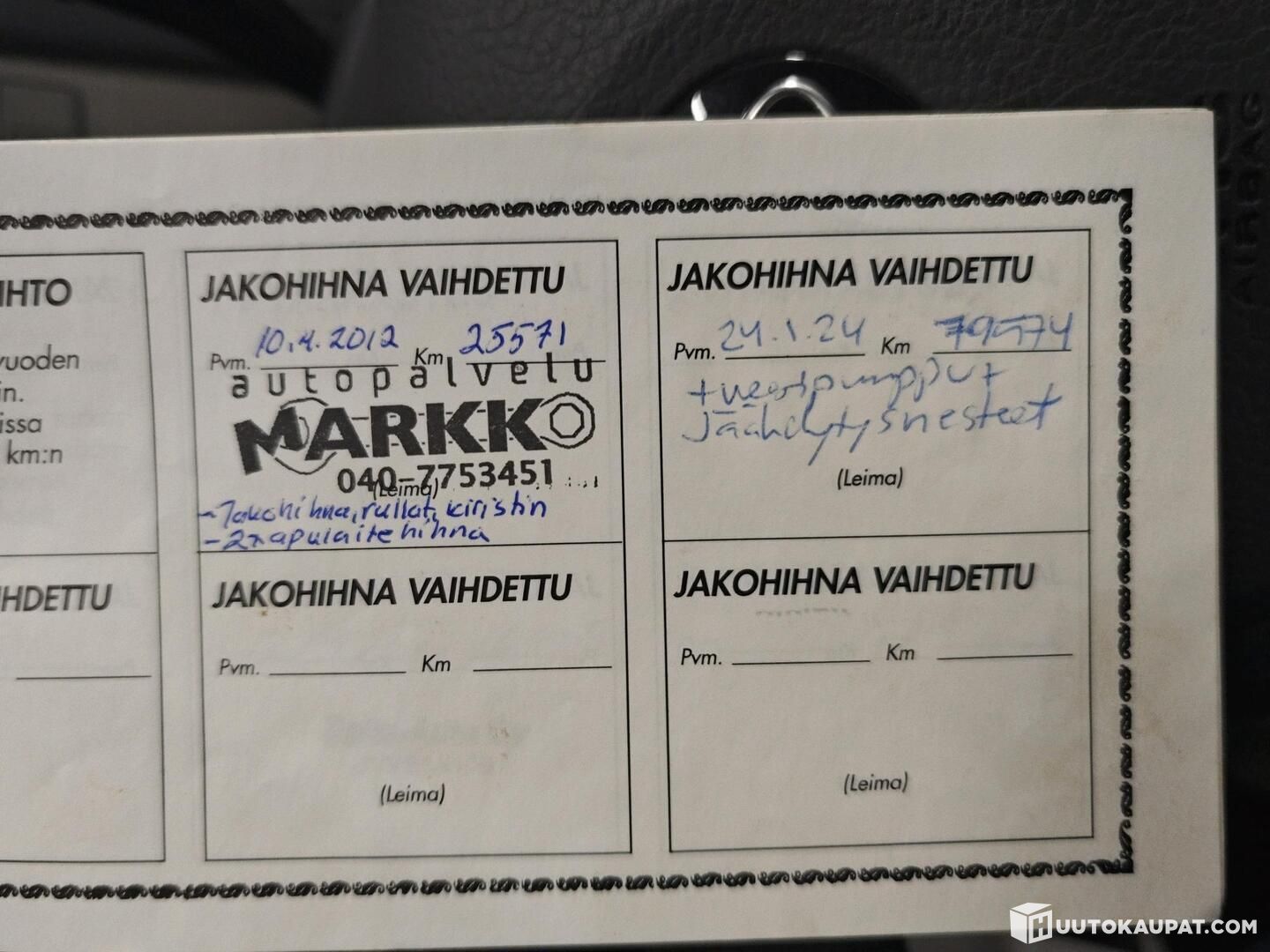 Viimeisin jakohihnan vaihto tehty 46595 kilometriä ajettuna 4 / 2018
