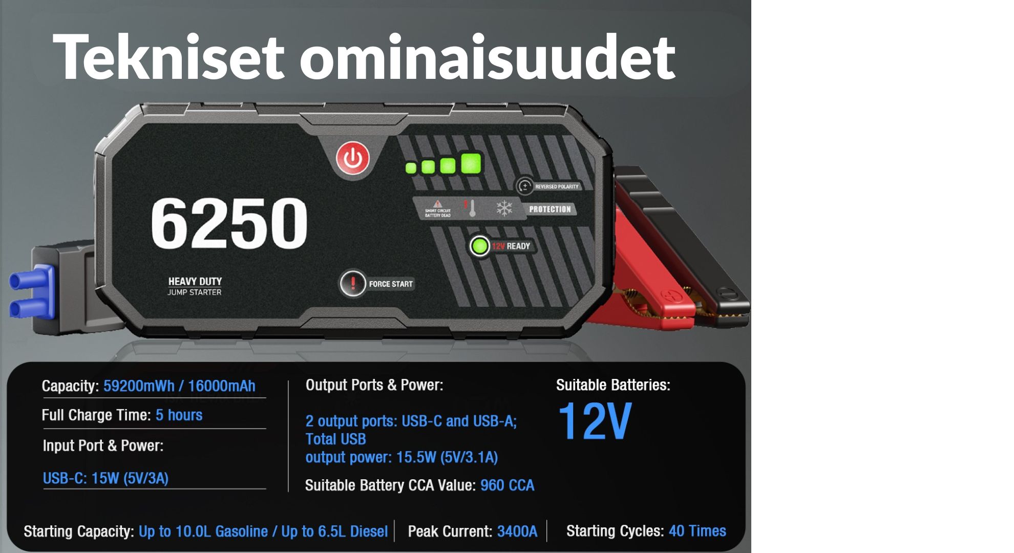 - 3400A (max boost 12 apuvirta)
