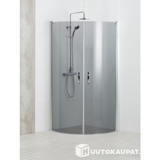 Puolipyöreä suihkunurkka 6 mm paksua turvalasia. Ovissa magneettitiivisteet ja kromatut metallivetimet. Kätevät nostosaranat helpottavat ovien avaamista. Sisältää 18 mm:n laahustiivisteen.