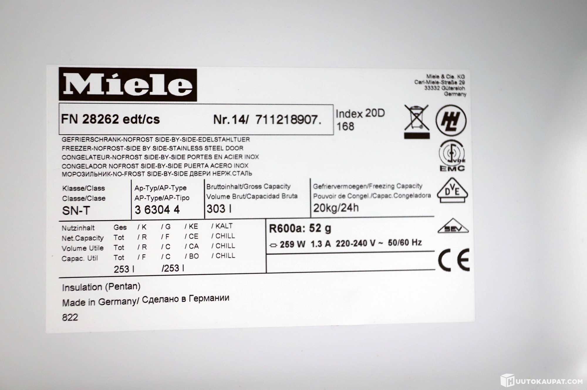 Toinen kuvissa näkyvä Miele-pakastinkaappi ei kuulu huutoon, vain vasemmanpuolinen kaappi kuuluu huutoon.