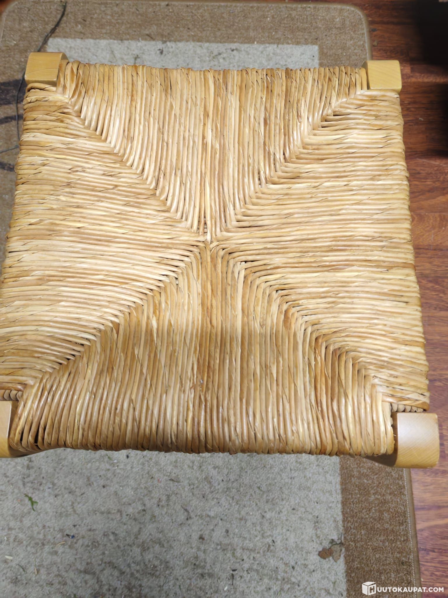 Hyväkuntoisia vaaleita punottuja jakkaroita 8 kappaletta sekä 1 sinirunkoinen.