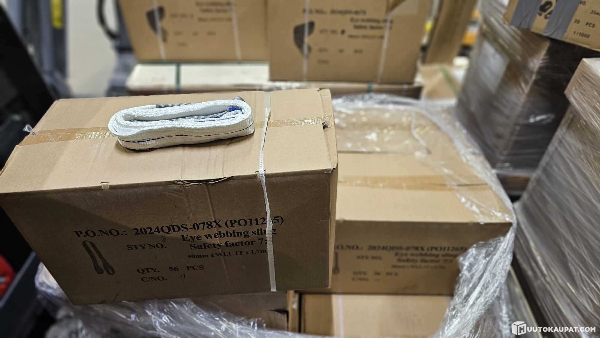 7 laatikkoa eli 392 kpl, uusia ja virheettömiä silmukkanostovöitä. Nostokyky 1 000 kg ja murtolujuus 7 000 kg. Jatkuvakäyttöisiä eli varmuuskerroin on 7:1. Pituus 1,7m.