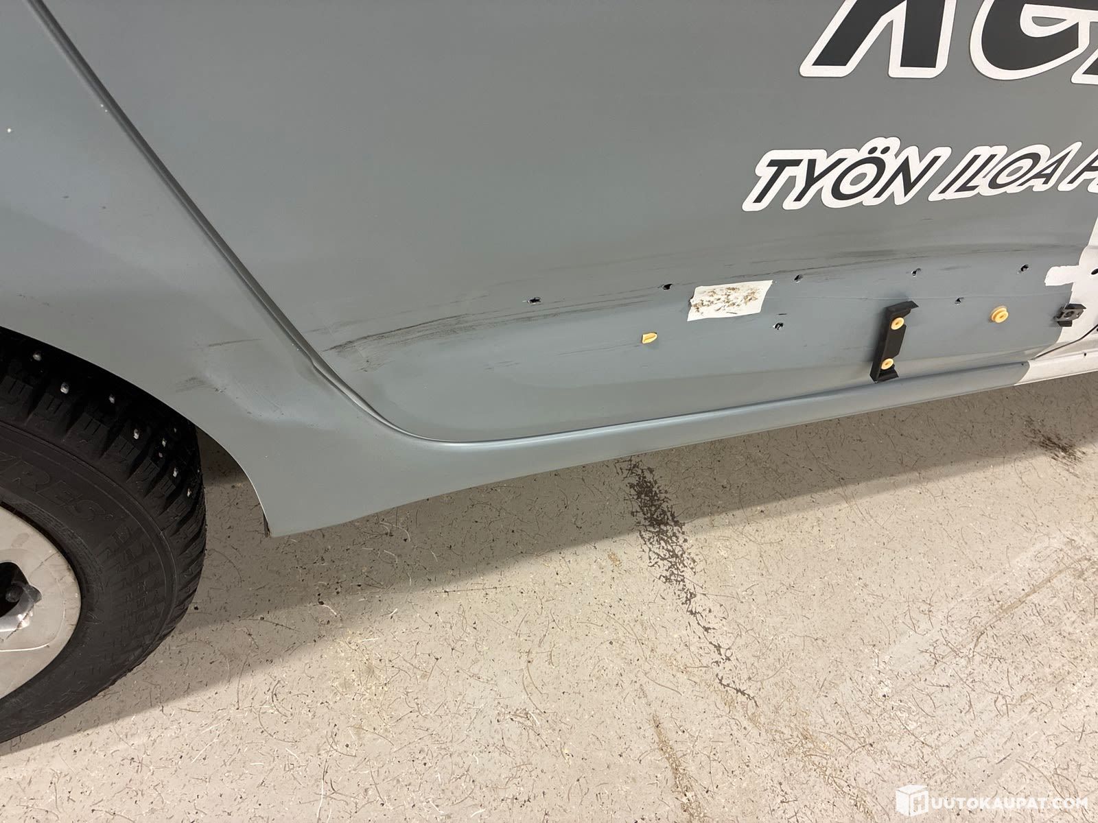 Uuden omistajan tehtäväksi jää poistaa teipit autosta, -halutessaan, ei ne tietty menoa haittaa.