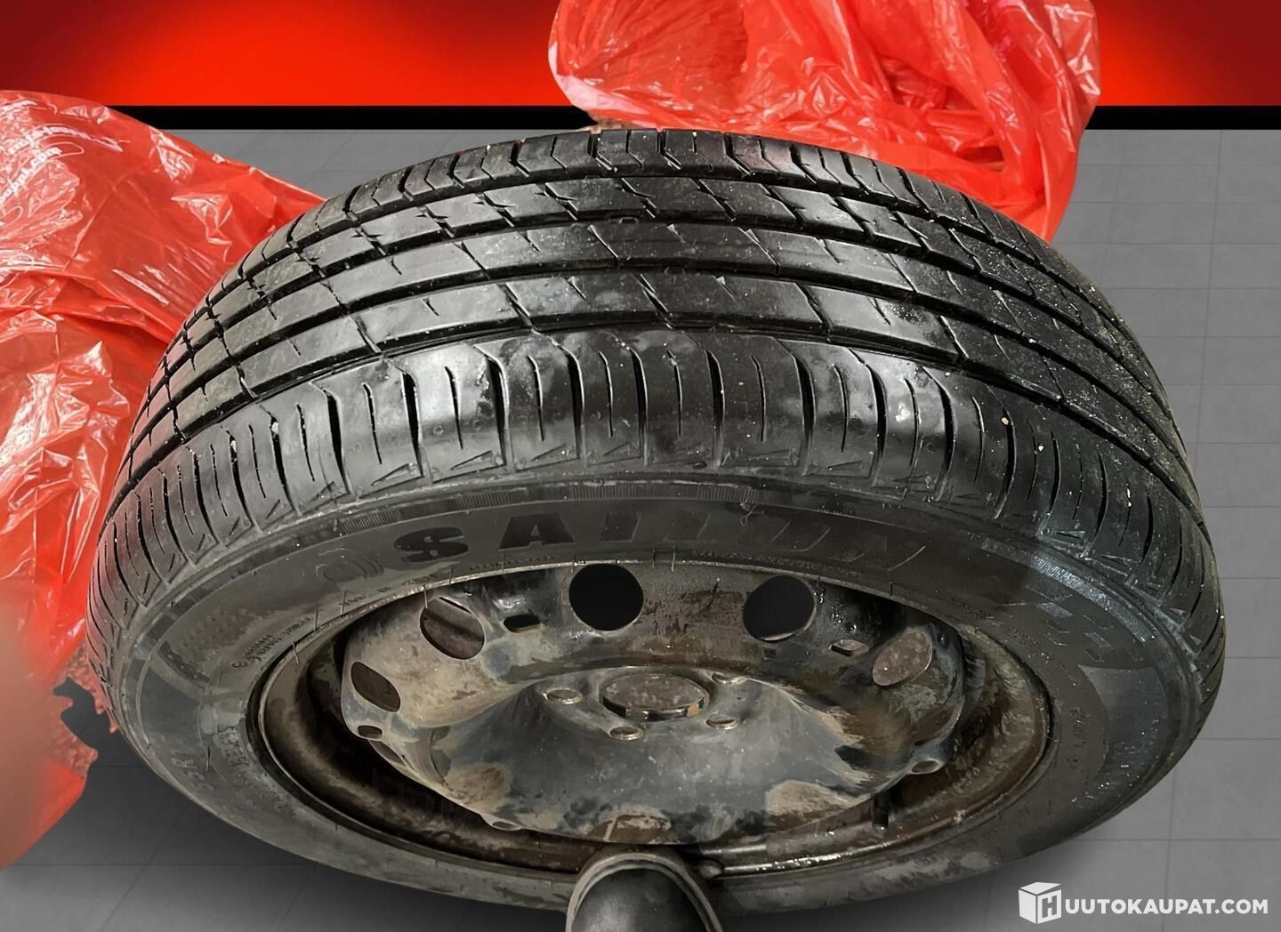 Kahdet hyväkuntoiset renkaat peltivanteilla. Talvelle Nokian nastat.