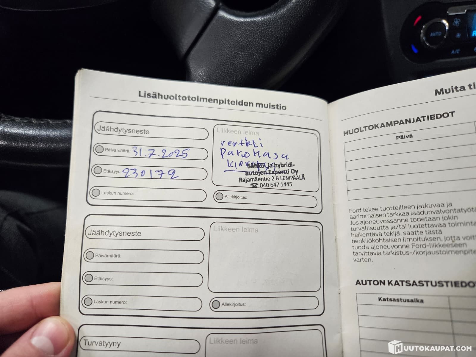 Hyvä huoltokirja (kts. kuvat)