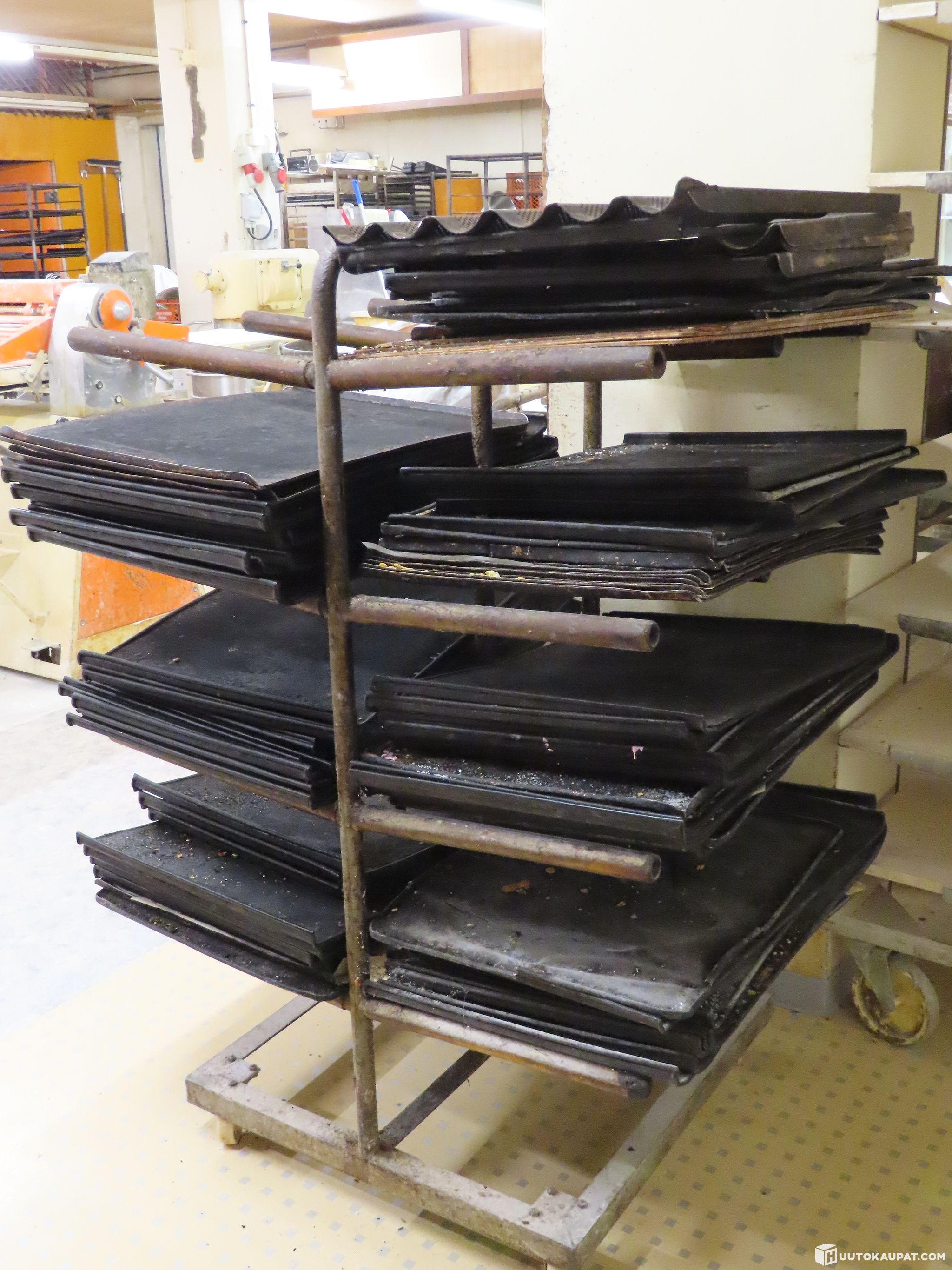 Leipomon uunivuoat leiville ja mm. käpykakuille, uunipellit, jäähdytyshäkit ja siirtovaunut
