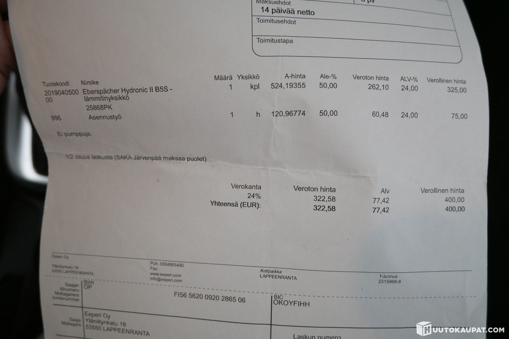 Verkkopankkimaksu, maksuaika 24 tuntia tarjouksen hyväksymisestä.