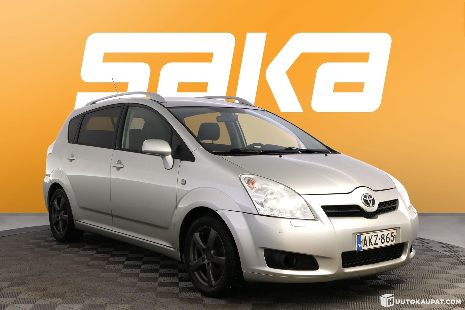 Toyotan alla on nastarenkaat hyvällä kulutuspinnalla, joitain nastoja irronnut. Kesärenkaat ajettavassa kunnossa.