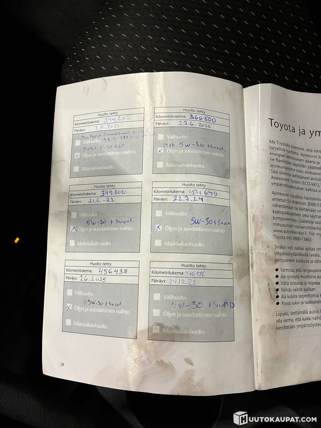 Tästä jo maantietä nähnyt 7-paikkainen corolla verso seuraavalle. Vaikka kilometrejä on kertynyt niin tekniikka vaikuttaisi pelaavan asiallisesti. Ajolleen hyvä. Korissa reilummin käytonjälkeä ja kulumaa, mutta ihan kopakassa kunnossa vaikuttaisi pellit olevan. Sisustassa myös normaalia kulumaa näille kilsoille. Tuulilasissa kulumaa, ei pahemmin kiveniskuja. Hyvin täytetty huoltokirja! Viimeisin öljynvaihto on 476tkm kohdalla