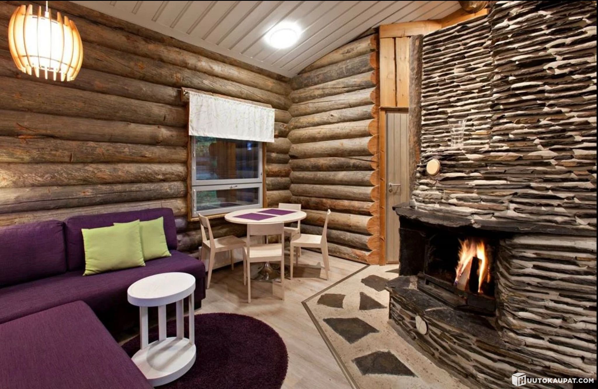 Kodikas kelomökki, jossa kaksi makuuhuonetta, olohuone, keittiö, sauna, kylpyhuone, wc ja terassi