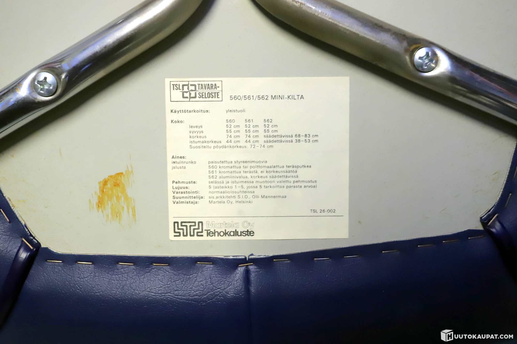 Vintage Martela Kilta-tuoli, design Olli Mannermaa.