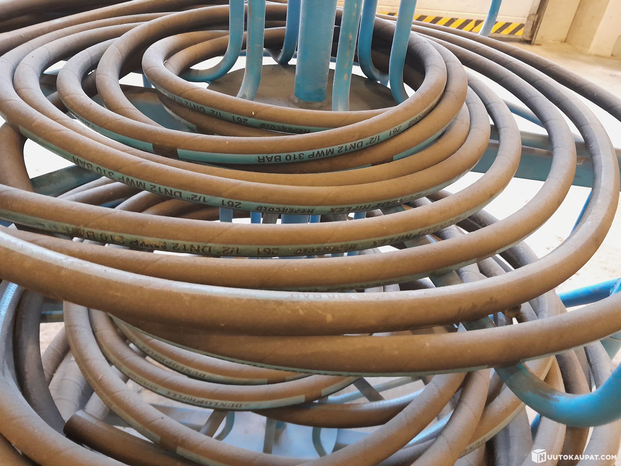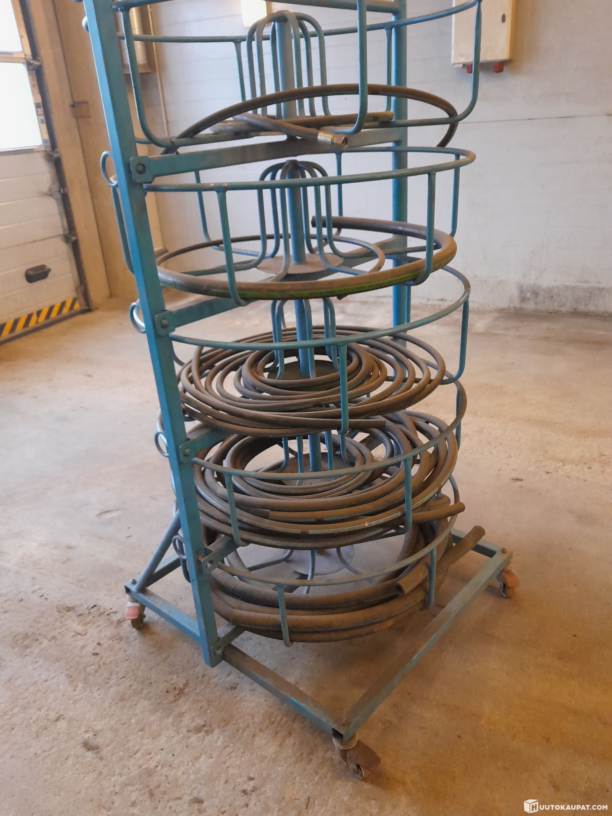 Finn-Power letkuteline pyörillä. Jotain letkuja tulee mukaan mitä kuvissa näkyy.