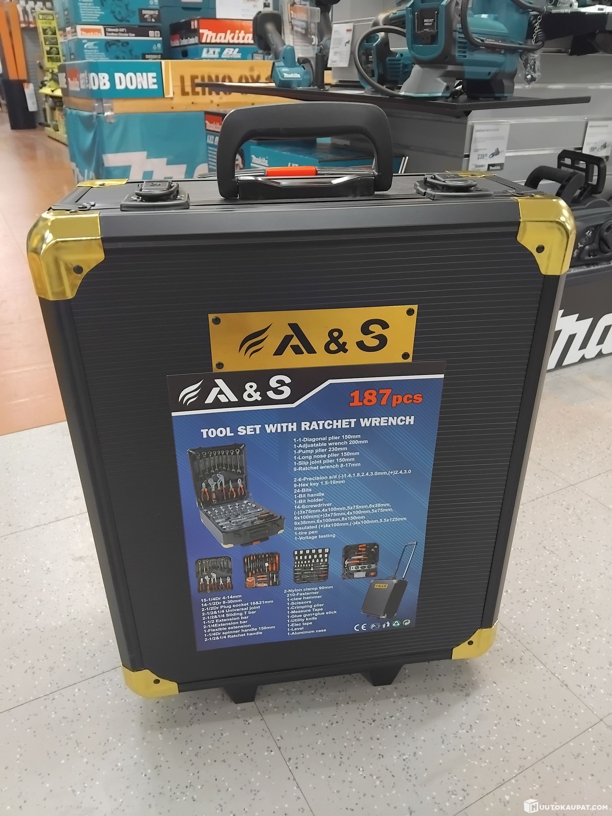 Laadukas ja kattava lajitelma erilaisia työkaluja kovassa salkussa, jossa myös pyörät ja vetokahva kuljetusta varten. Uusi, tehtaan pakkauksessa.