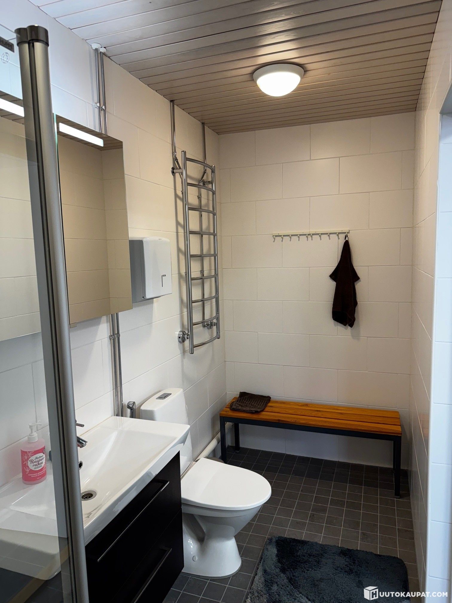 Keittiö-/ neuvotteluhuone, wc- tila, suihkutila, avointa tilaa