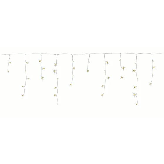 Valosarja sisä- ja ulkokäyttöön. Kirkas johto, 35 valoketjua. Ketjujen väli 20 cm, 5 erimittaista led-ketjua. Yht. 140 lämpimän valkoista lediä, ei vaihdettavia. Valo-osa 6,8 m, liitosjohto 10 m. IP44. Muuntaja 31 V/3,6 W. Paloaika 10 000 tuntia.