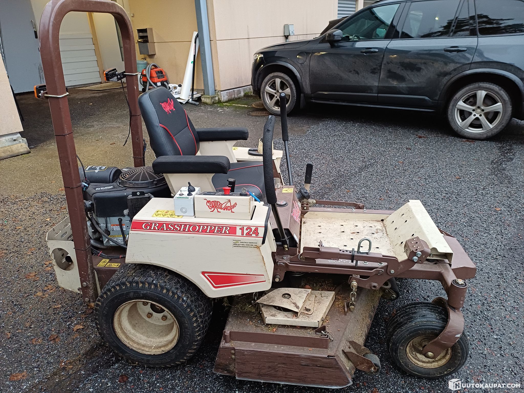 ulosmitattu Grasshopper 124V/100V päältä ajettava ruohonleikkuri käyttöönottovuosi 2021.