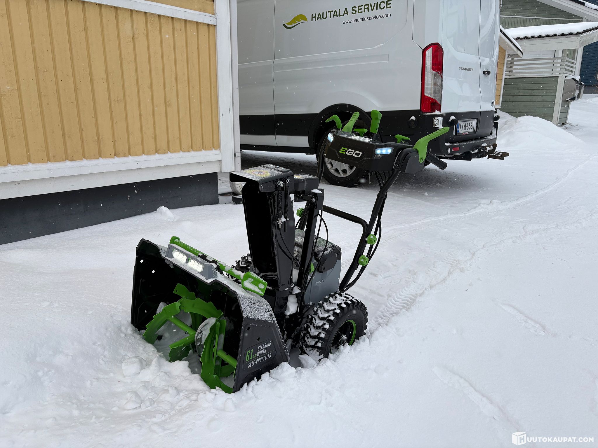 Koneella ajetaan lumisateen sattuessa vielä muutamia demoja asiakkailla ennen huutokauppojen päättymistä. Takuut lähtee liikkeelle kun laite rekisteröidään ensimmäiselle omistajalle!