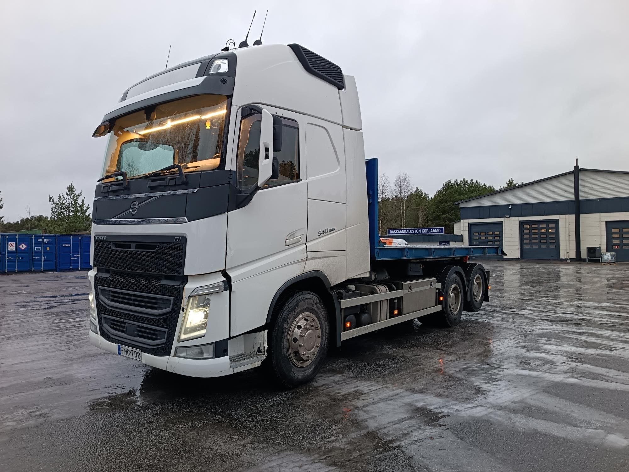 Käytetty koukullinen rahtilava HIAB:lla.