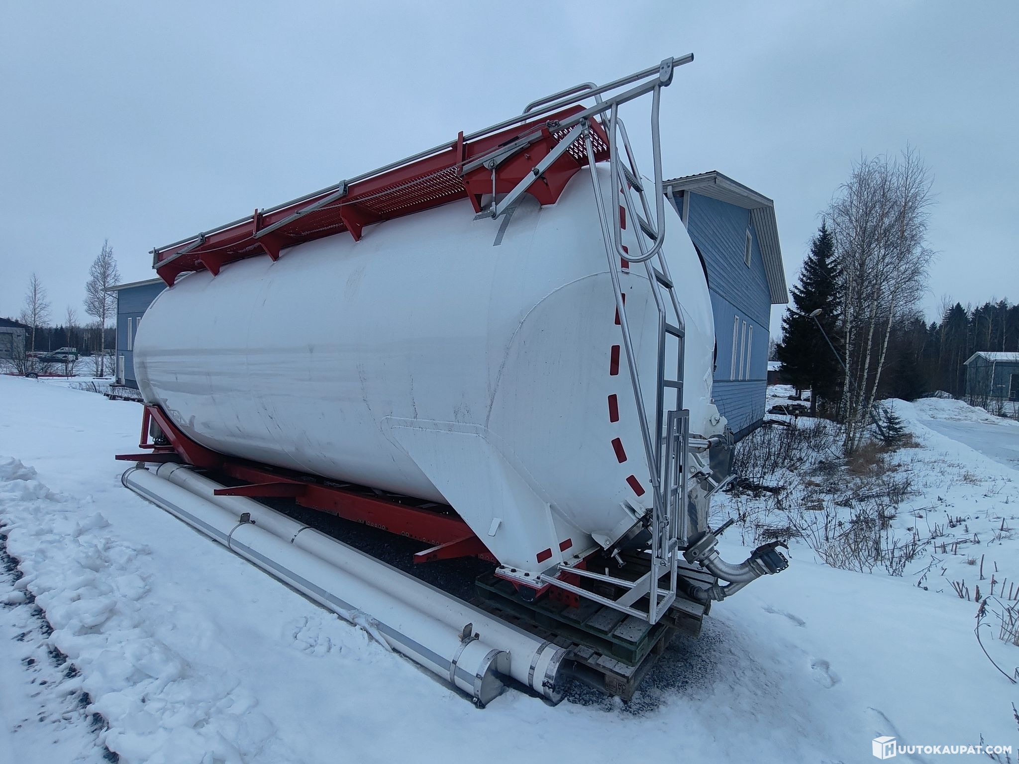 Huutokaupataan kuvissa näkyvä 30m3 bulk-säiliö joka on Scanian apurungon päällä.