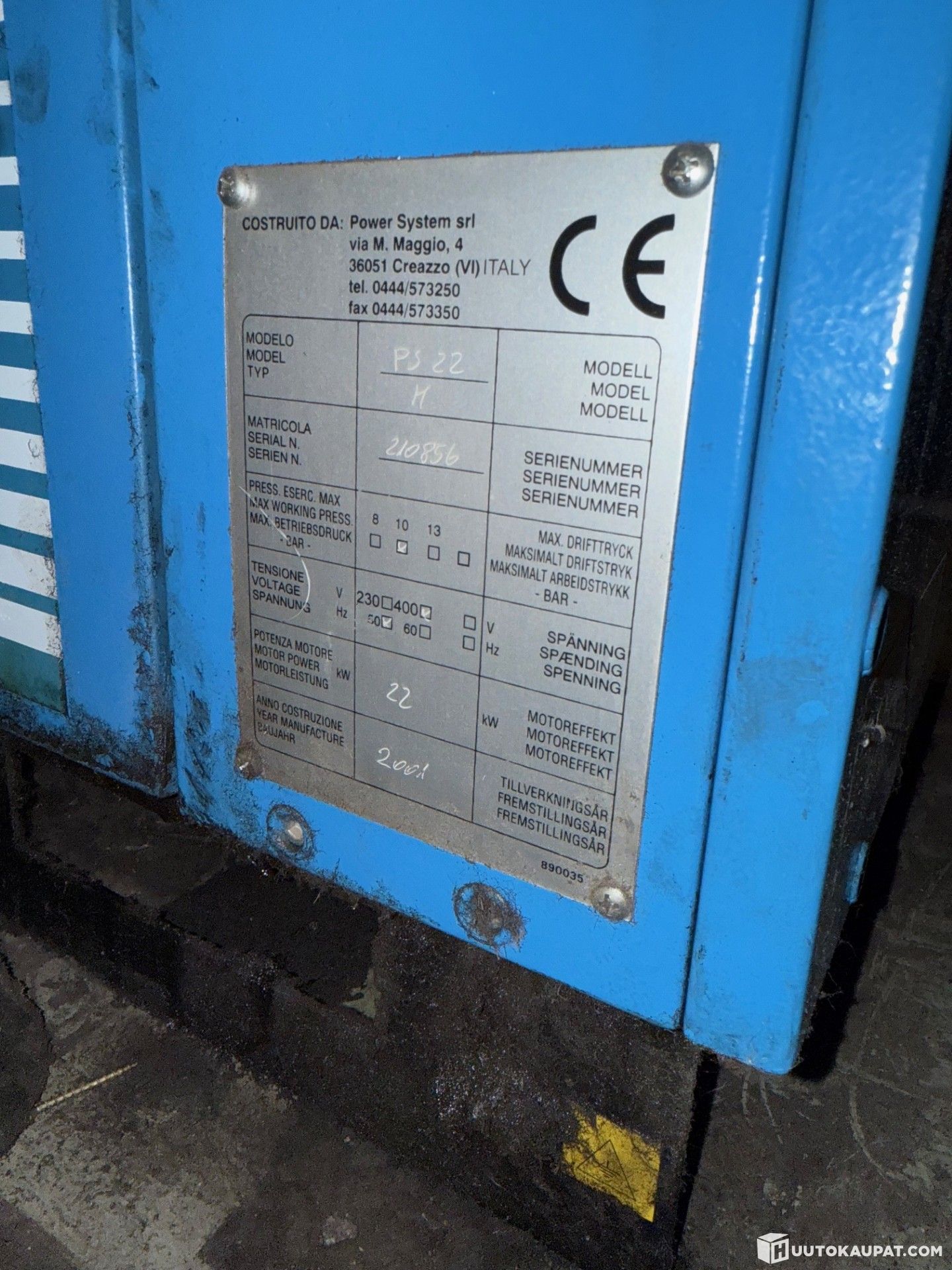 Kyseessä on ruuvikompressori, joka on ollut autohuollon käytössä.