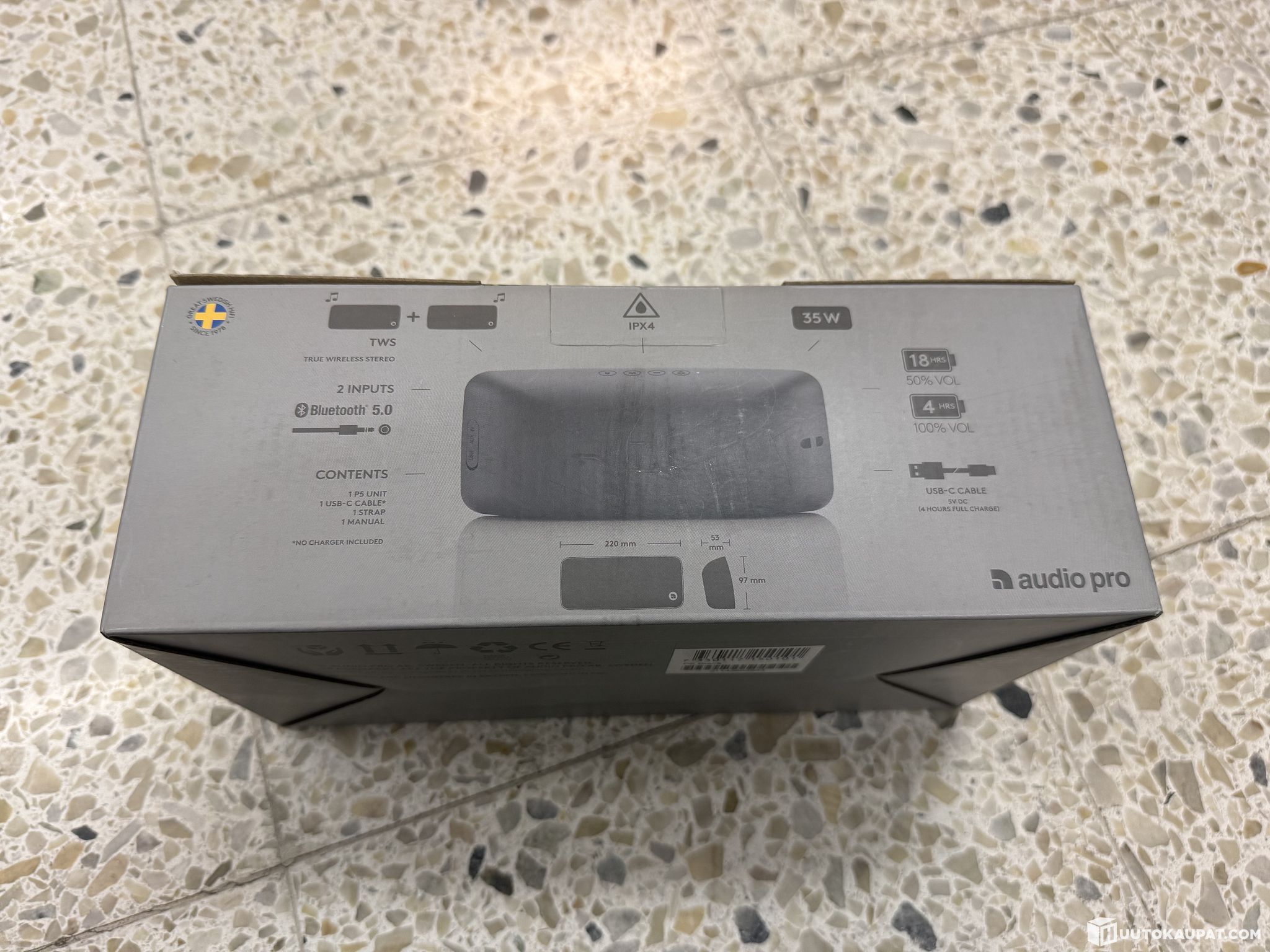 Kannettavalla Audio Pro P5 -kaiuttimella kuuntelet musiikkia täysin ilman häiritseviä johtoja. Se luo tasaisen äänen, ja sen säänkestävässä rungossa on kätevä hihna. Pienen kokonsa ansiosta se kulkee helposti mukanasi.