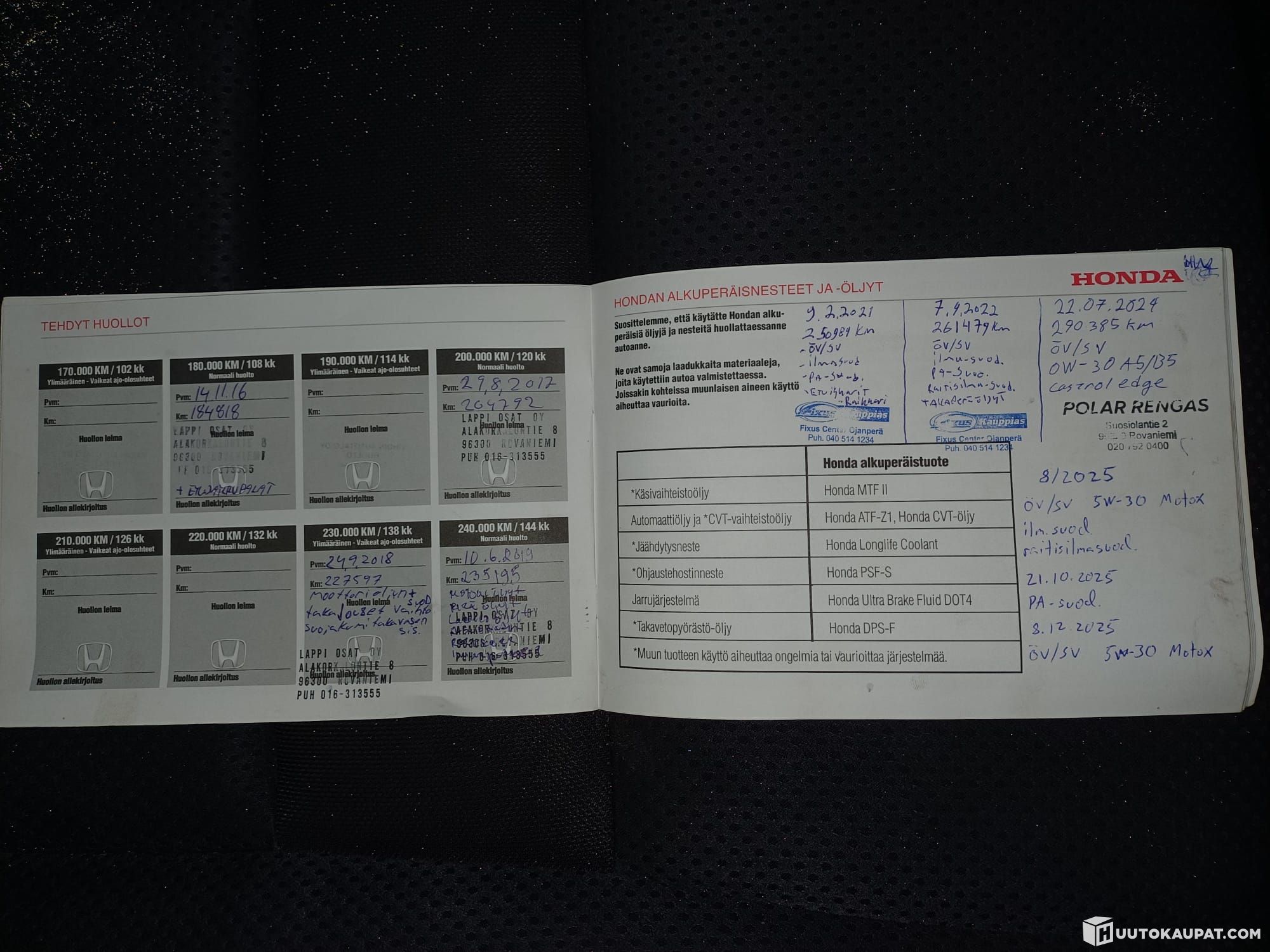 Öljyt vaihdettu joulukuussa, ei merkkivaloja tällä hetkellä