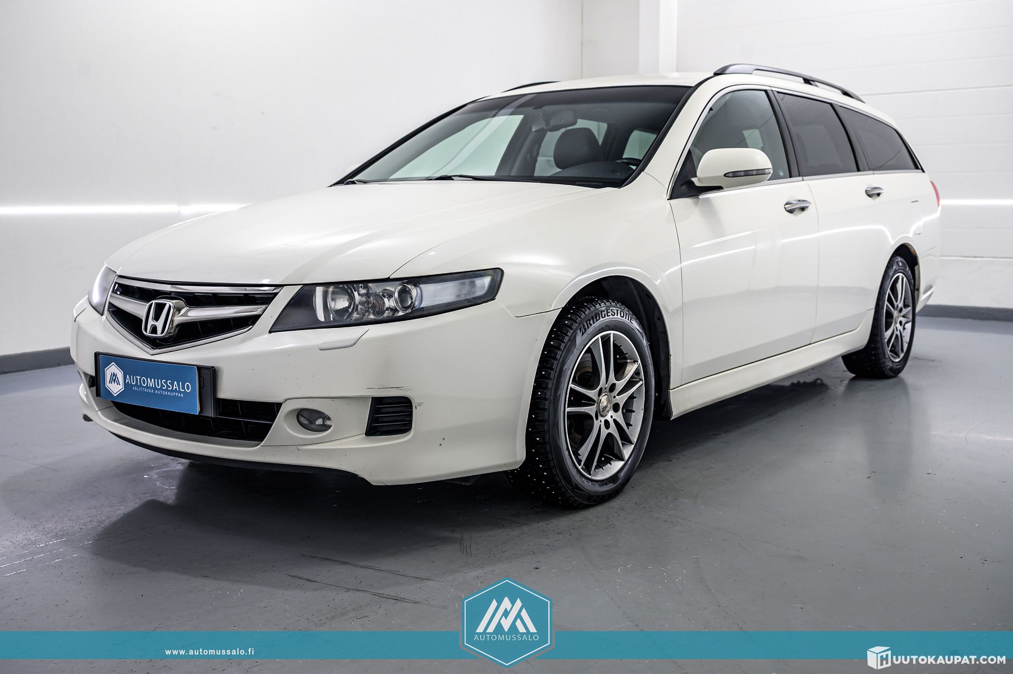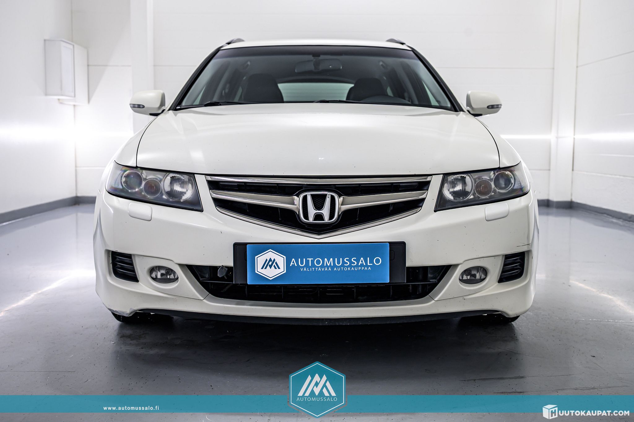 Mussalon huutokaupattavien ajoneuvojen valikoimaan saapui hyvin varusteltu farkku Honda. Tämä auto on valkoisella helmiäisvärillä varustettu Honda Accord Tourer Sport 2,0i AT.