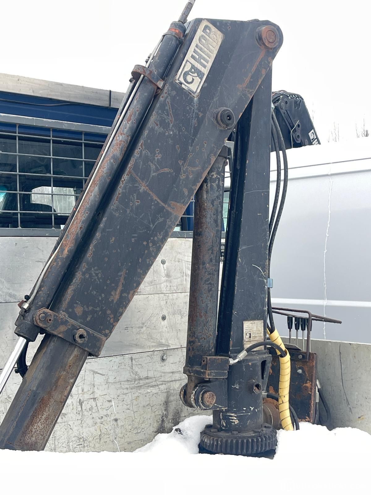 Lavalla Hiab 230 nosturi, ohjataan nosturin varren juuresta vivulla.