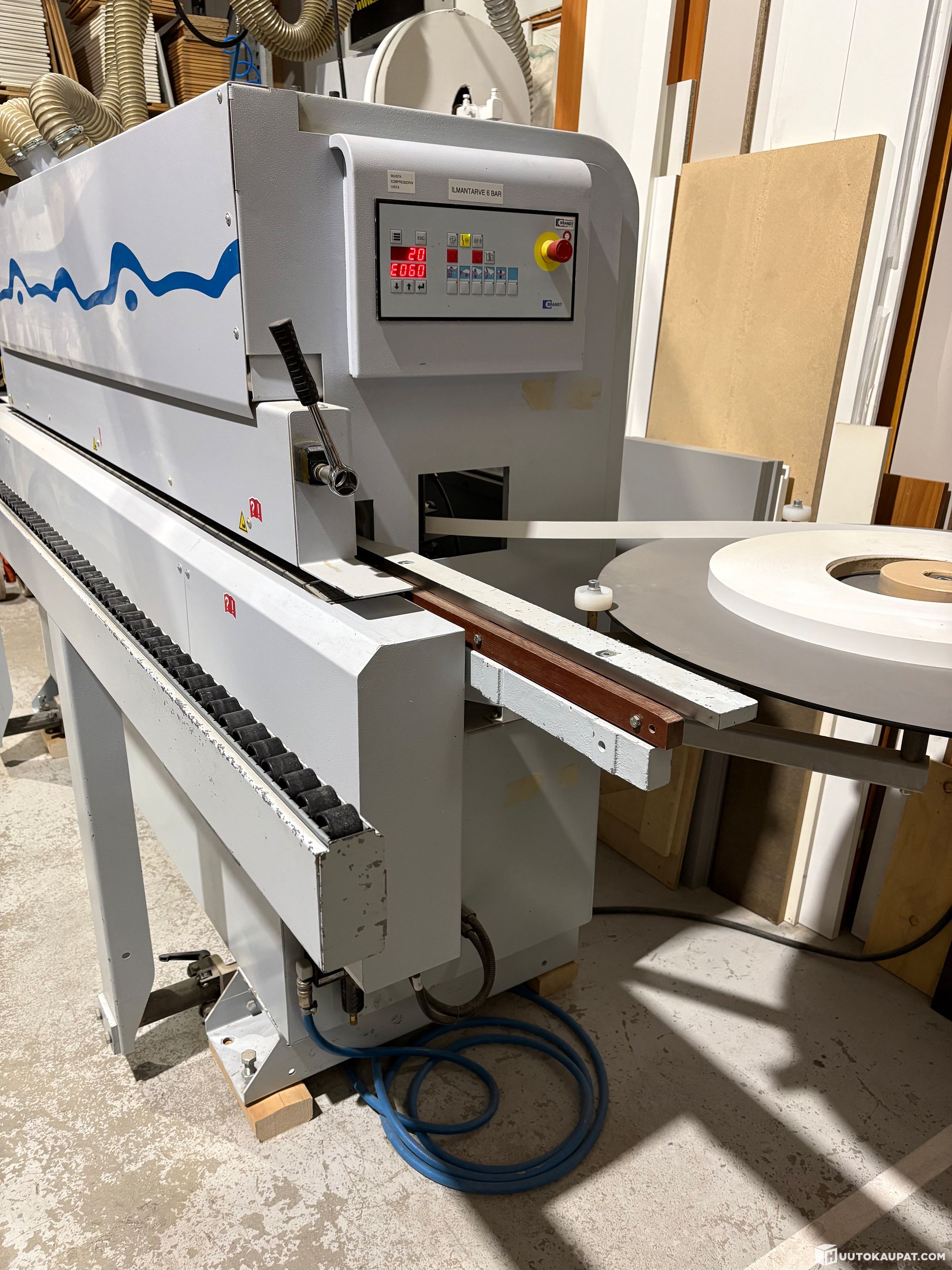 Laadukas Brand Optimat KD210 reunalistoituskone. Tuotanto- tai harrastuskäyttöön. Kompakti koko, koneen pituus noin 3,6 m.