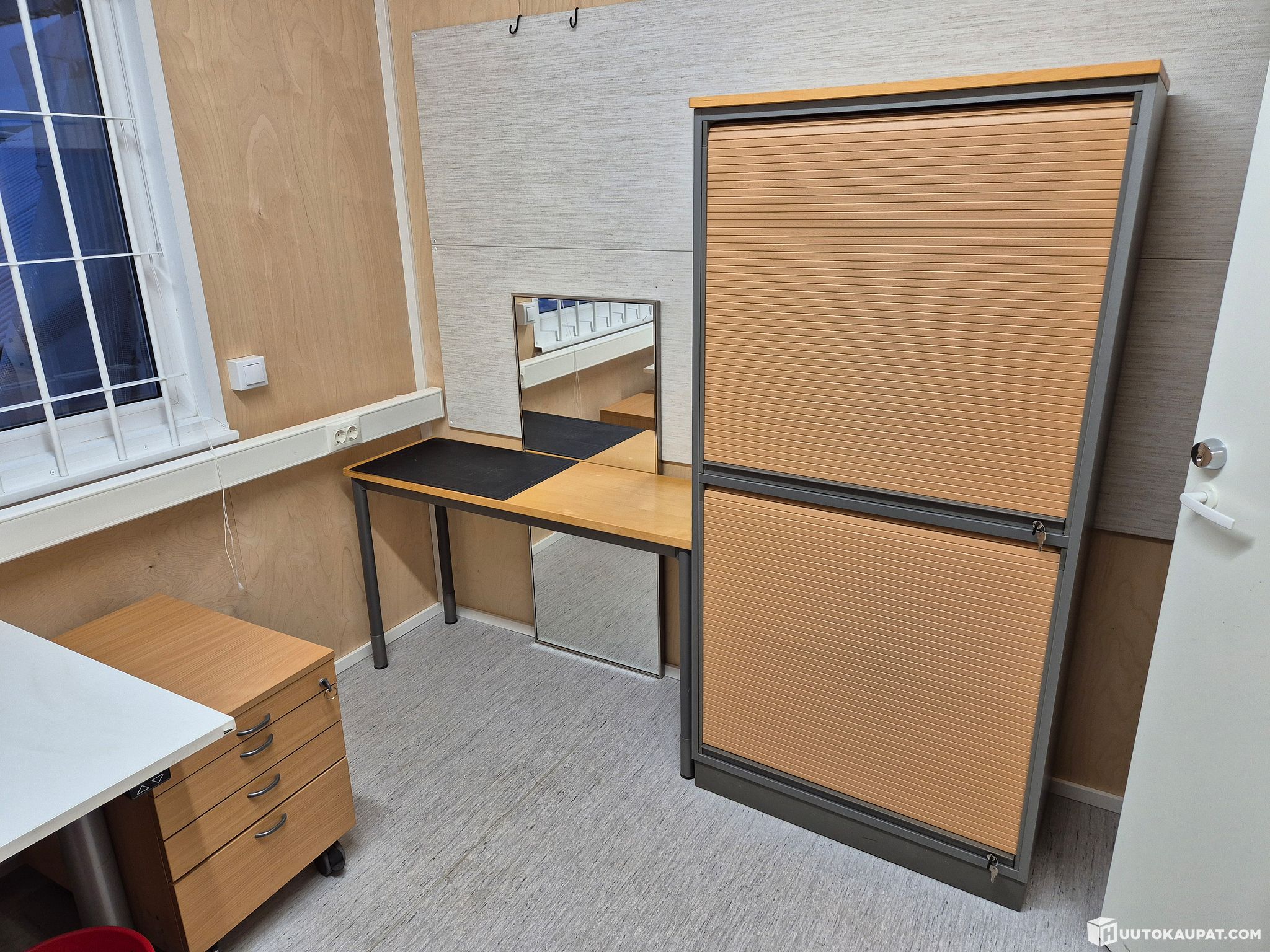 MARTELAN SÄHKÖPÖYTÄ + RULOKAAPPI + KAAPPI + LAATIKOSTO + 2 KPL TUOLIA+ PIENI PÖYTÄ