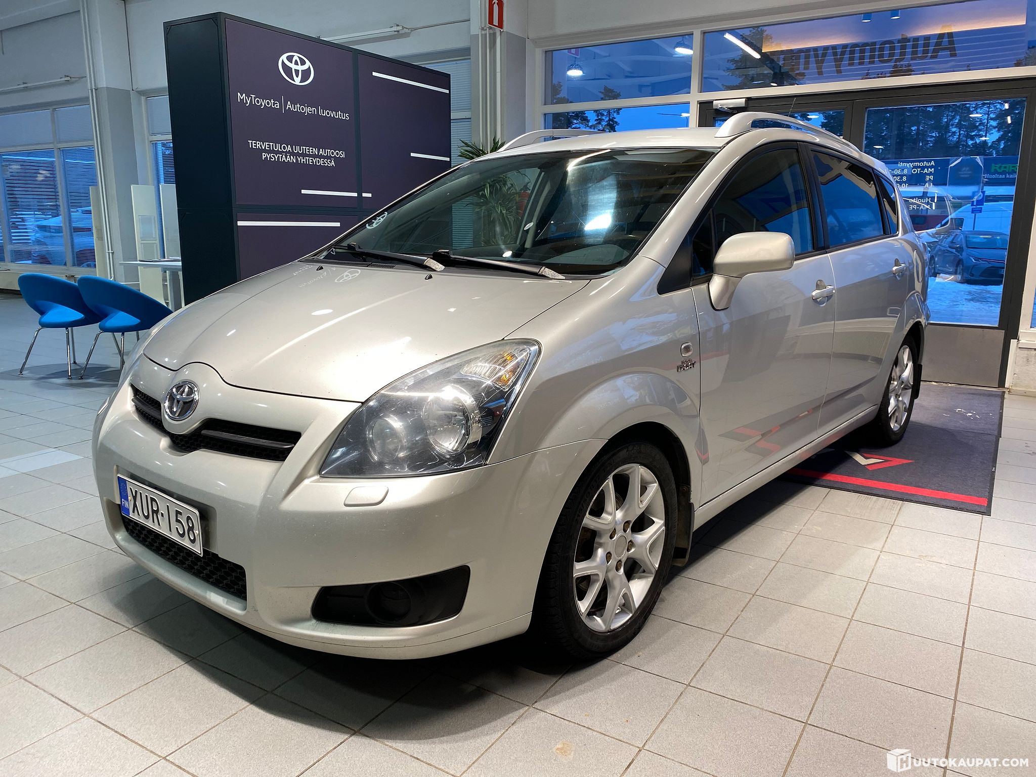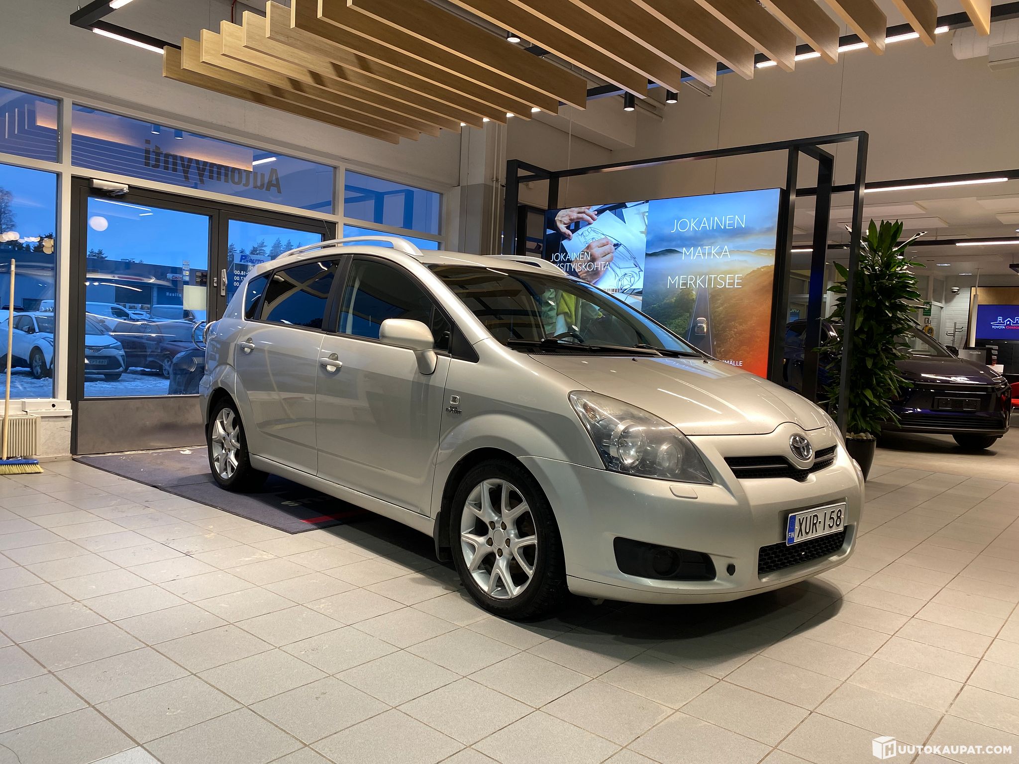 Ikä ja kilometrit huomoiden asiallisen oloinen 7-paikkainen, vetokoukullinen Toyota Corolla Verso vääntävällä 2,2 diesel-koneella!