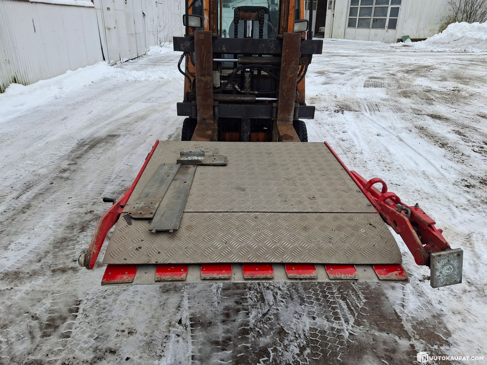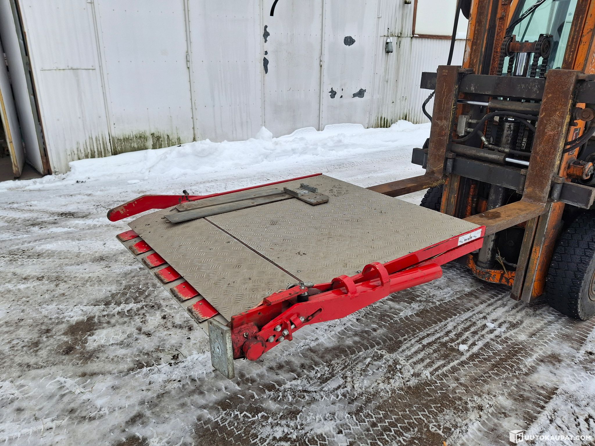 Mekaaninen nippuun taittuva ajoramppi paketti autoon tai peräkärryyn. Avattuna pituus n. 2m ja leveys reilusti päälle 80cm. Esim. ruohon leikkurin saa ajettua kyytiin.