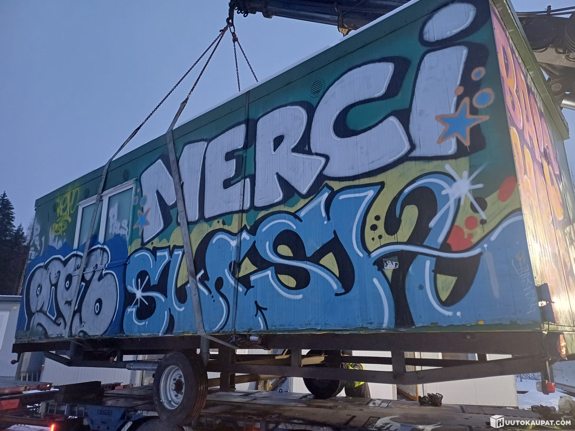 Pintapuolisesti ei havaittuja vikoja muuta kuin graffiti-maalit.