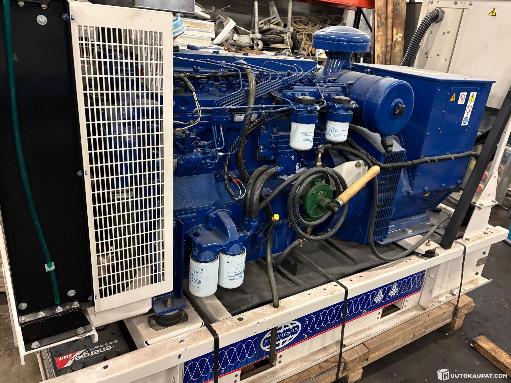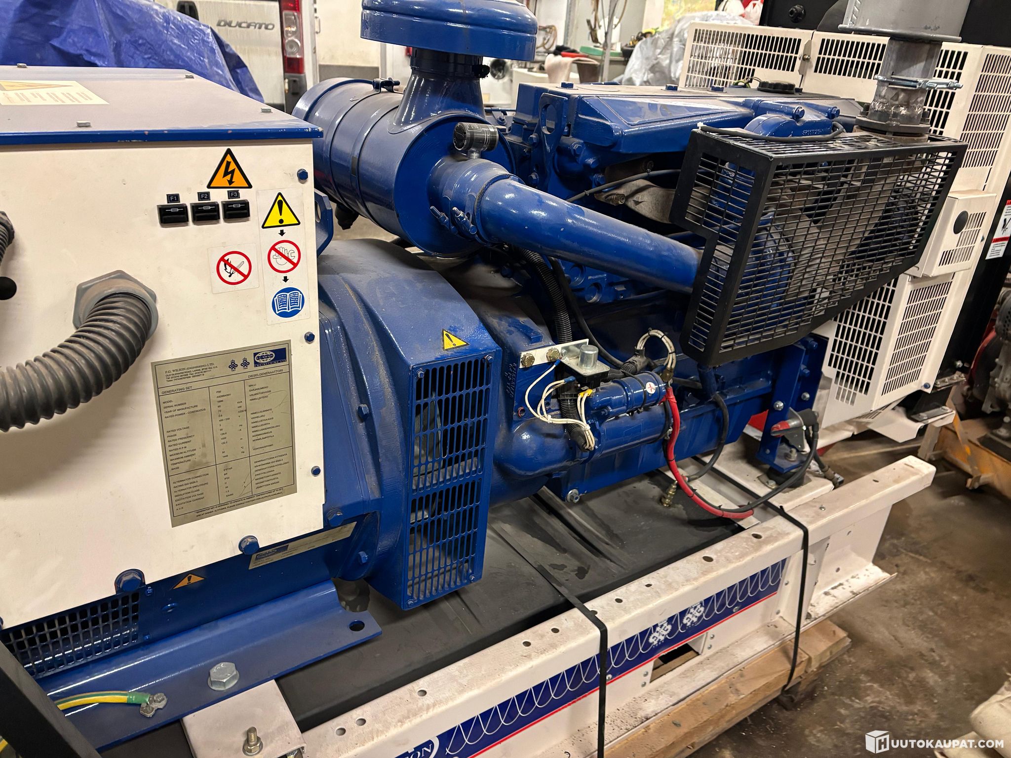 Siistikuntoinen, kohtuutunneilla oleva laatugeneraattori. Perkins- dieselmoottori, jatkuva teho 90 kVa. Tekniset tiedot kuvissa. Nostettavissa trukilla kyytiin. Koekäyttömahdollisuus. Sijainti Kouvola.