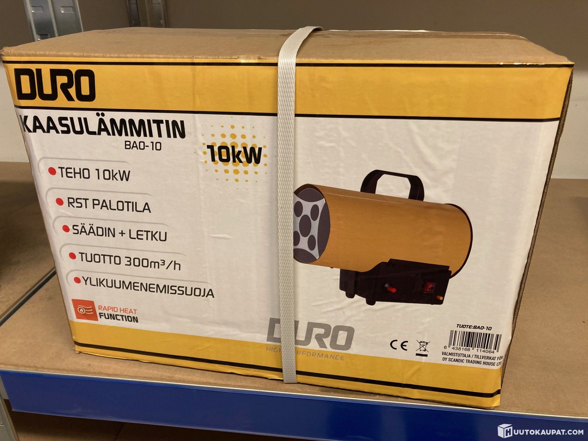 Duro Kaasulämmitin 10 kW säätimellä on kompakti hallilämmitin joka lämmittää tehokkaasti isonkin tilan. Pienen kokonsa ansiosta lämmitintä on helppo siirrellä paikasta toiseen, joten se sopii erinomaisesti esimerkiksi työmaakäyttöön.