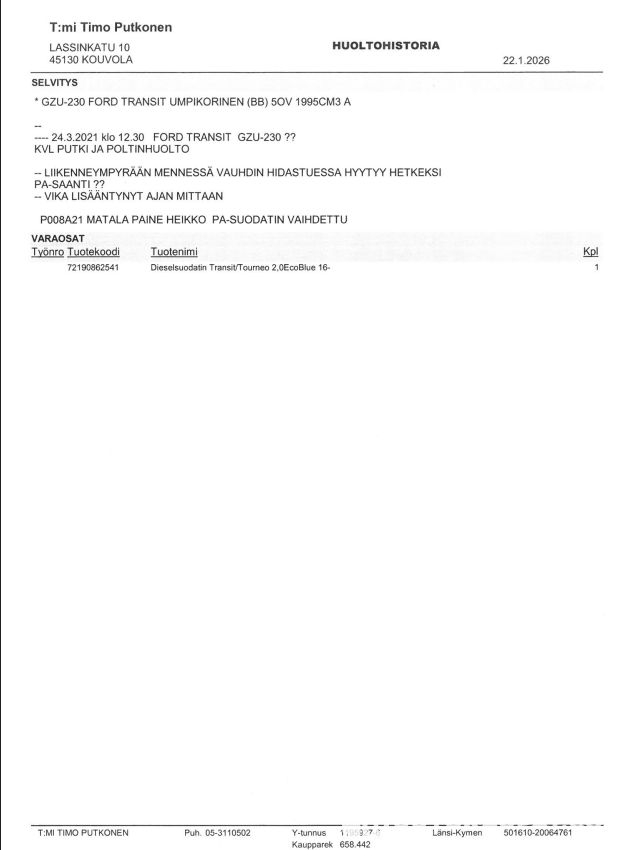 Huollot: Autoa huollettu säännöllisesti ja viat korjattu aina kun jotain tullut ilmi.
