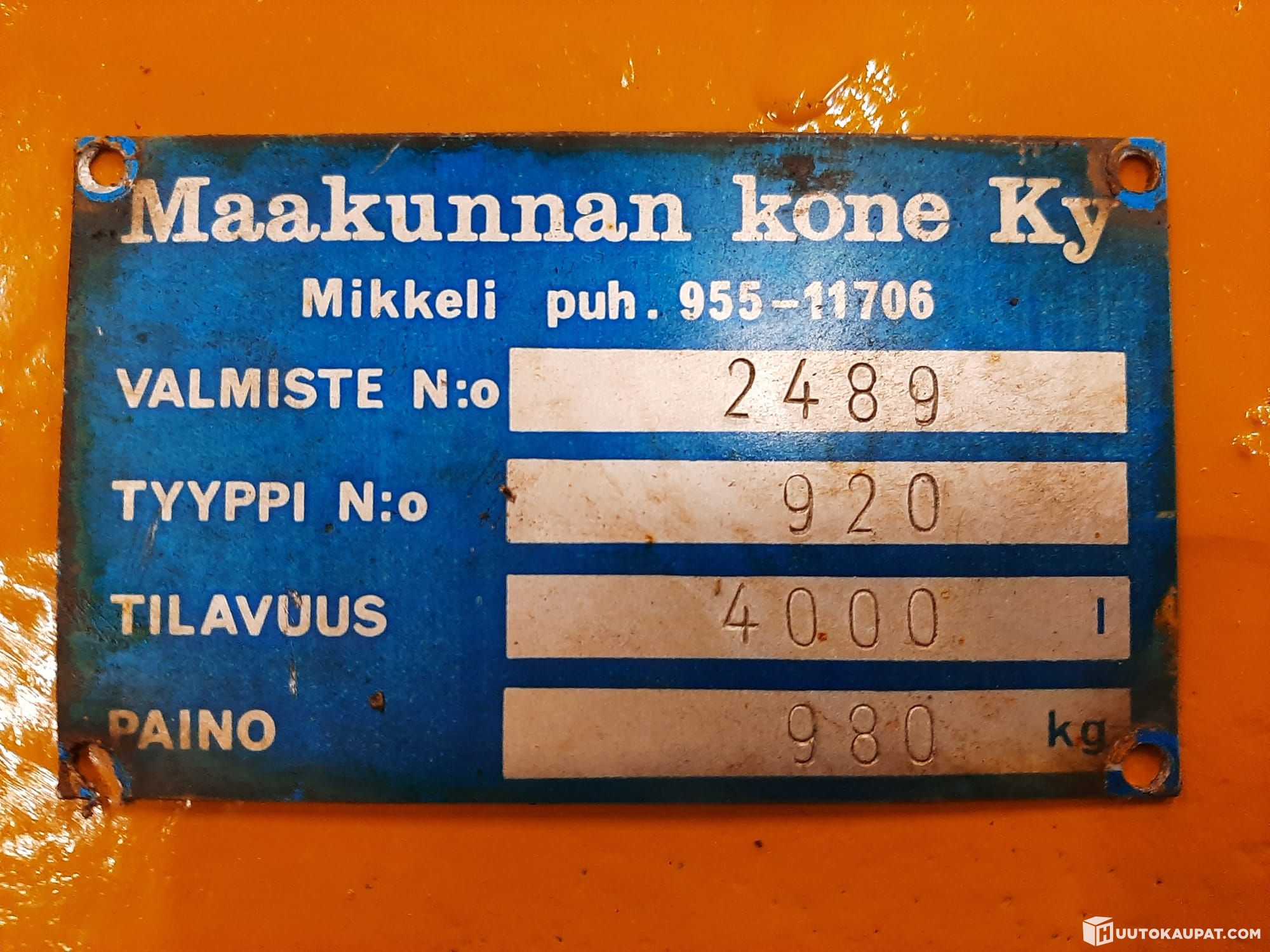 Tämän kohteen myyjä on Huutokaupat.com. Kaivinkoneurakointi Jukka Heinonen antaa Huutokaupat.comin puolesta kohteesta lisätietoja ja vastaa kohteen luovutuksesta. Kohde tulee aina maksaa Huutokaupat.com-sivustolla olevien verkkomaksupainikkeiden kautta tai Huutokaupat.comin laskulla. Jos kohdetta ei makseta Huutokaupat.comille, Huutokaupat.com ei hyväksy mitään vastuuta kaupasta.