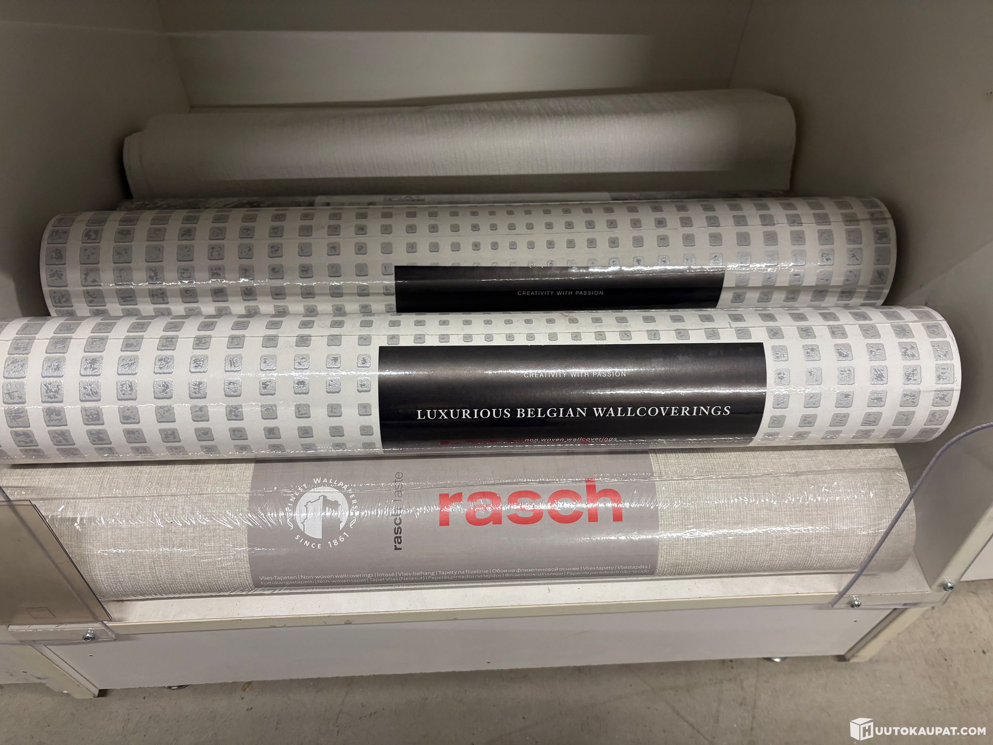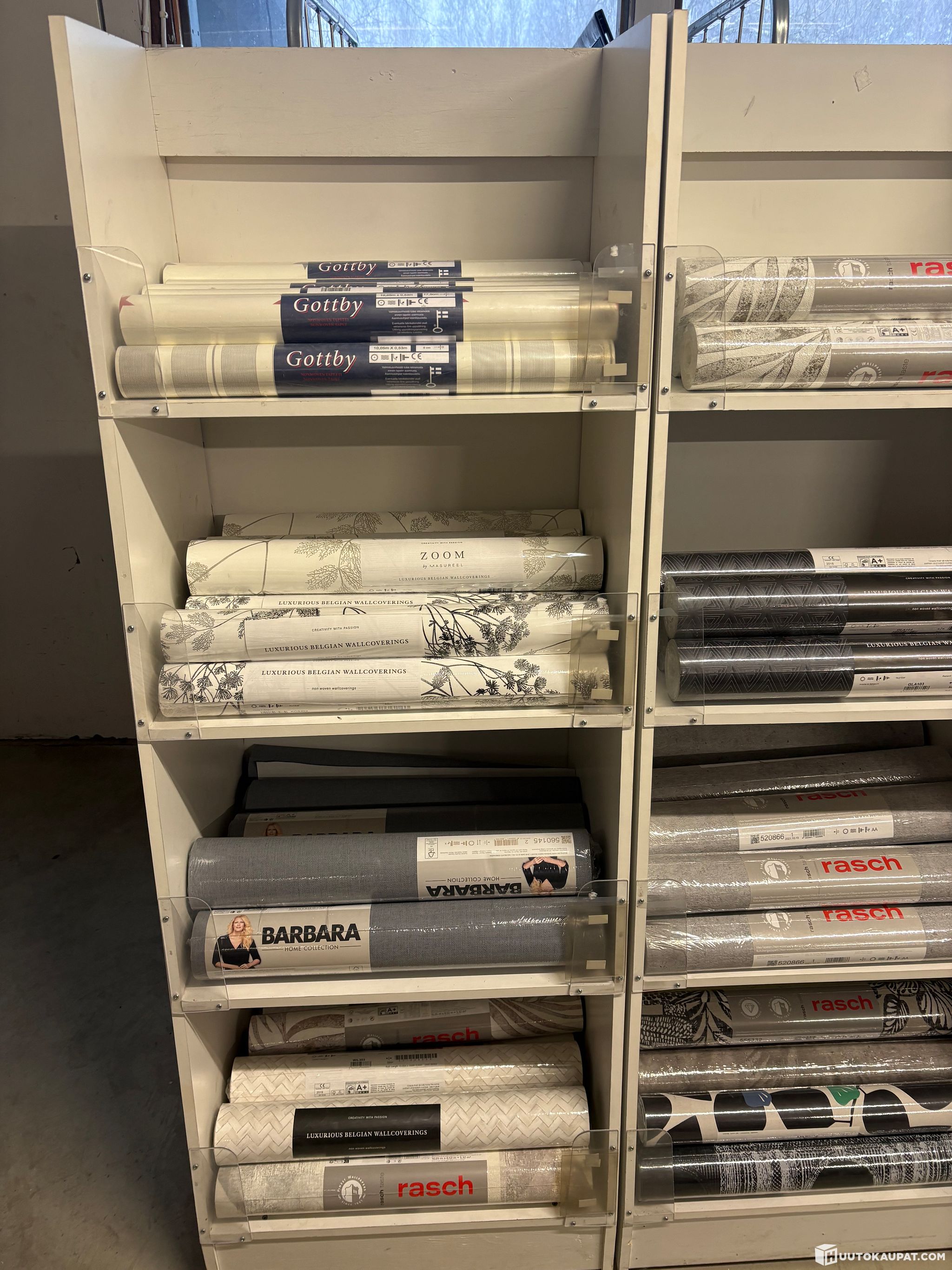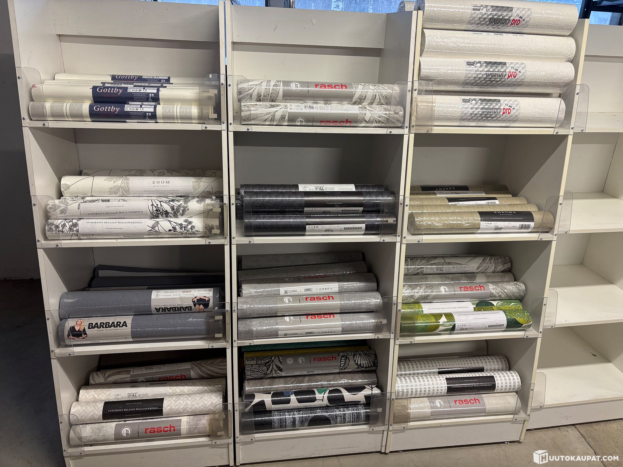 Löytyy myös täysiä lavoja ja myös vaalea sävyisiä tapetteja ja myös vähän lasikuitutapettia.